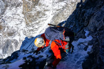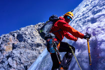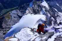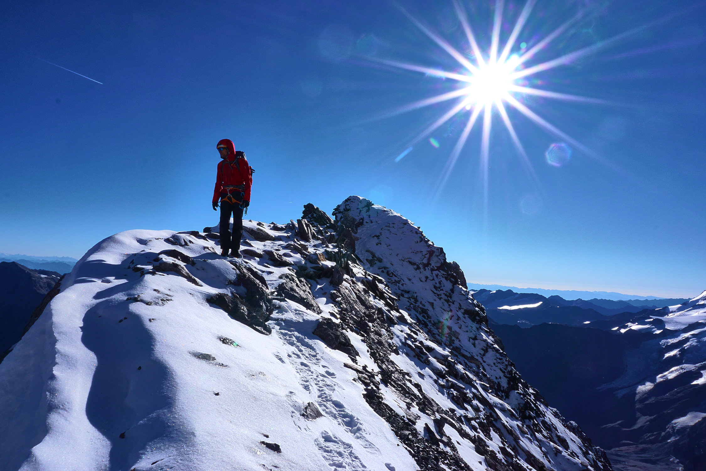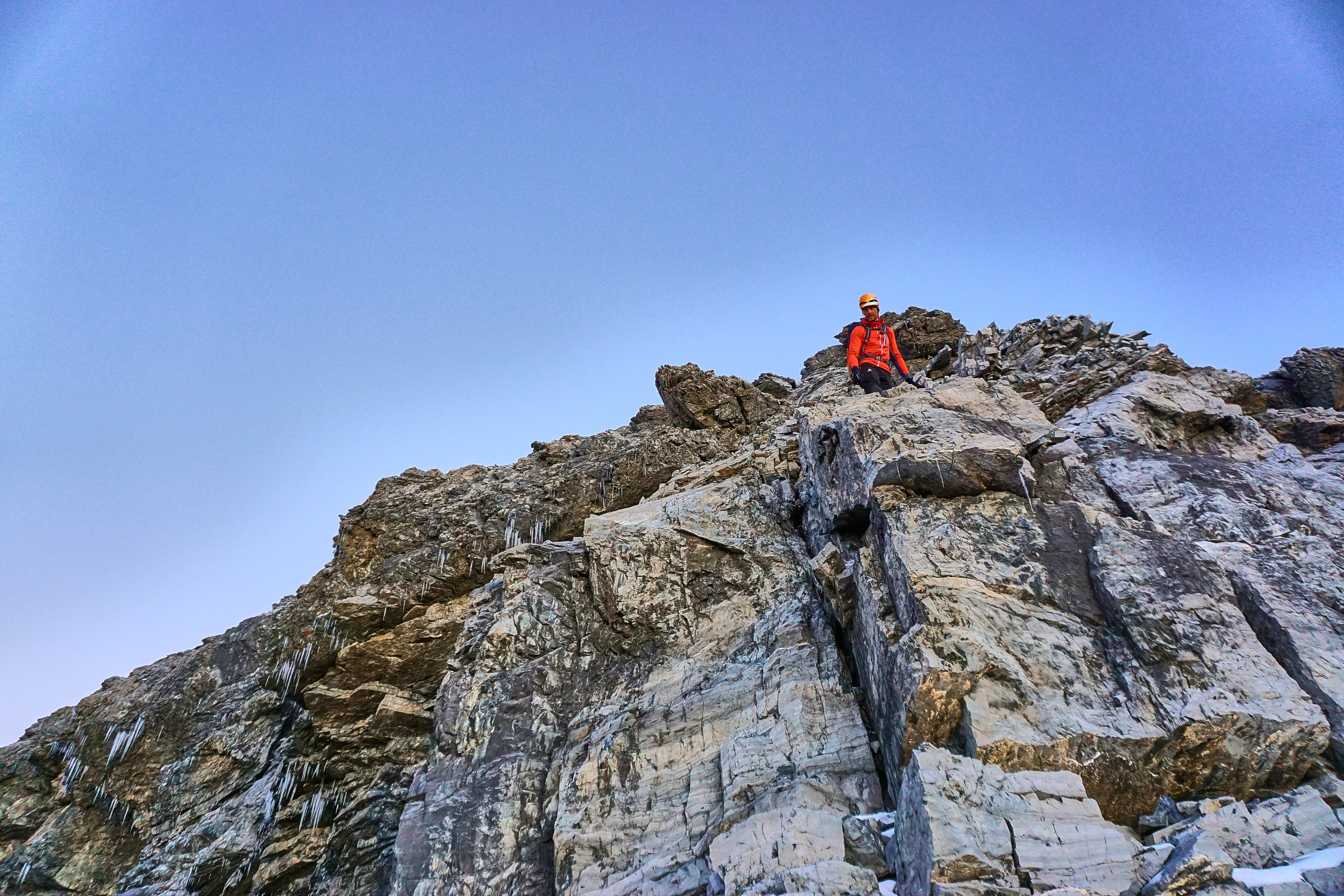 Mit Zustiegsschuhen bis zum ersten Firnfeld machbar, Fels bis dahin teilweise mit Firn bedeckt. Ab erstem Firn/Eisfeld mit steigeisenfesten Schuhen unterwegs, Fels ab da durchgehend kombiniert mit pulvrigem (schattseite) oder firnigem Schnee. Extremer Wind (wie immer erstes und zweites Firnfeld). Zweites Firnfeld den Felsen in der Mitte links umgangen, da das Firnfeld eingeblasen war. Zweite Schlüsselstelle/Schlusswand Schnee/Eis im Griff. Abstieg Normalweg: Gletscher in Ordnung, Leiter bei der großen Spalte noch da, es hat aber bis zum Lombardibiwak raufgeregnet, durch den Eisbruch haben wir uns mit Schrauben runtergesichert..