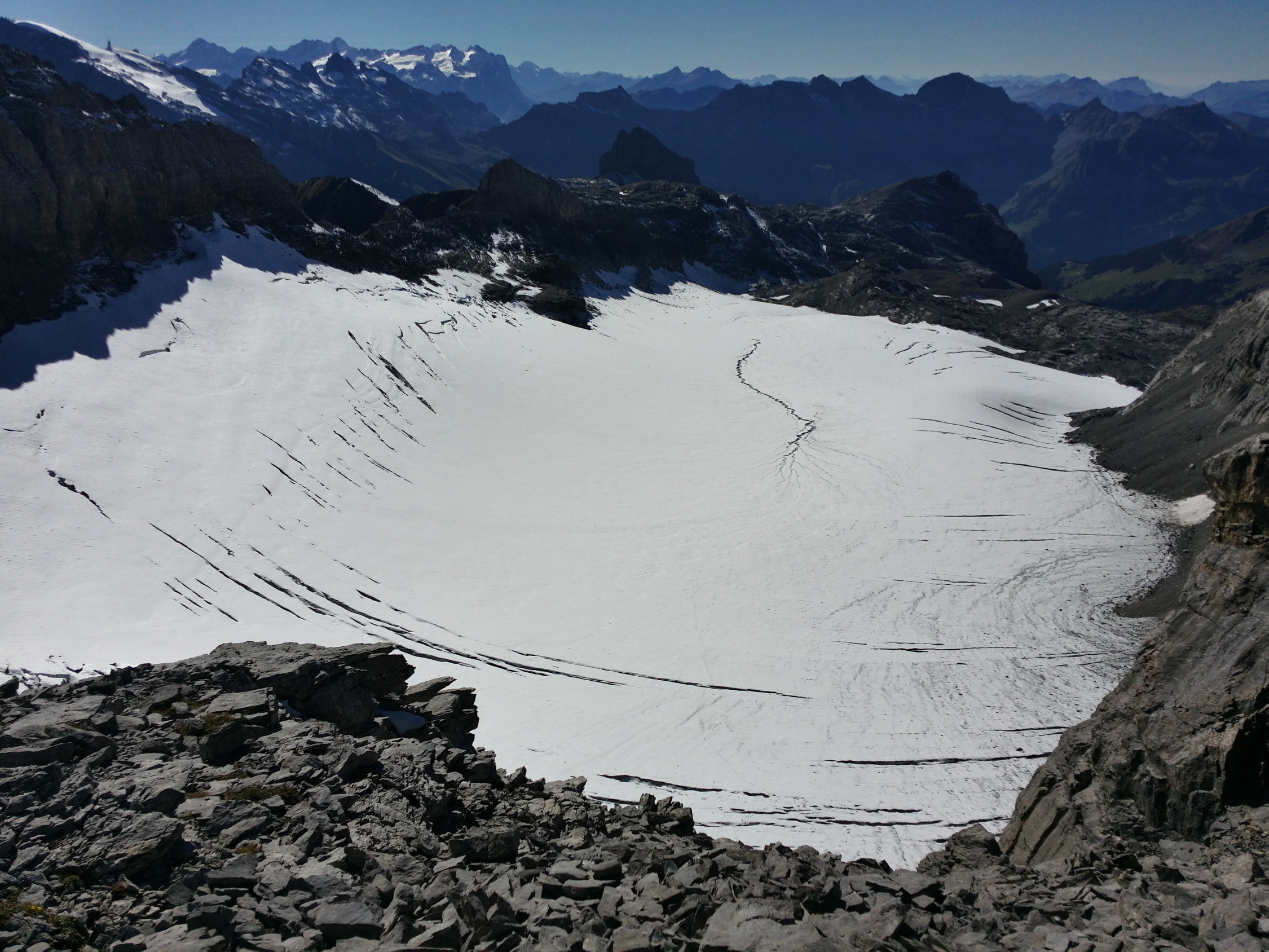 Aufstieg zum Hahnen trocken und sehr gut begehbar. Im Abstieg N-seitige Flanken mit einem Schaum Neuschnee. Von Hüenerstelli (Wasser nachfüllen möglich bei Schmelzwassertümpel) zum Griessengletscher und über den Wissisgstock S-Grat. Weiter zum Engelberger Rotstock und Abstieg via Rugghubelhütte.