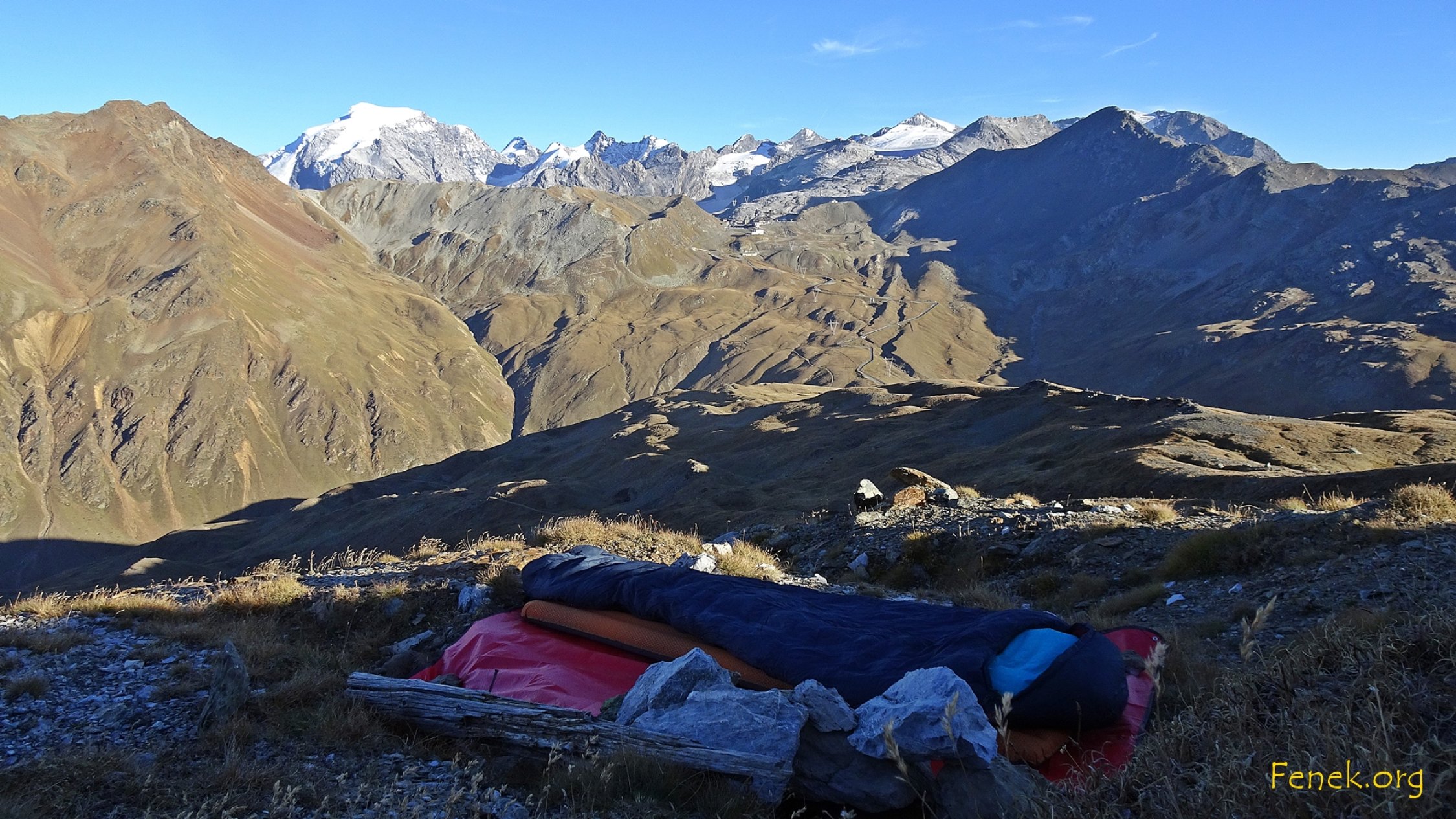 Habe unter dem Gipfel vom Piz Umbrail biwakiert. Eine klare und kalte Nacht. Konnte darum den Sonnenuntergang auf dem Gipfel geniessen.