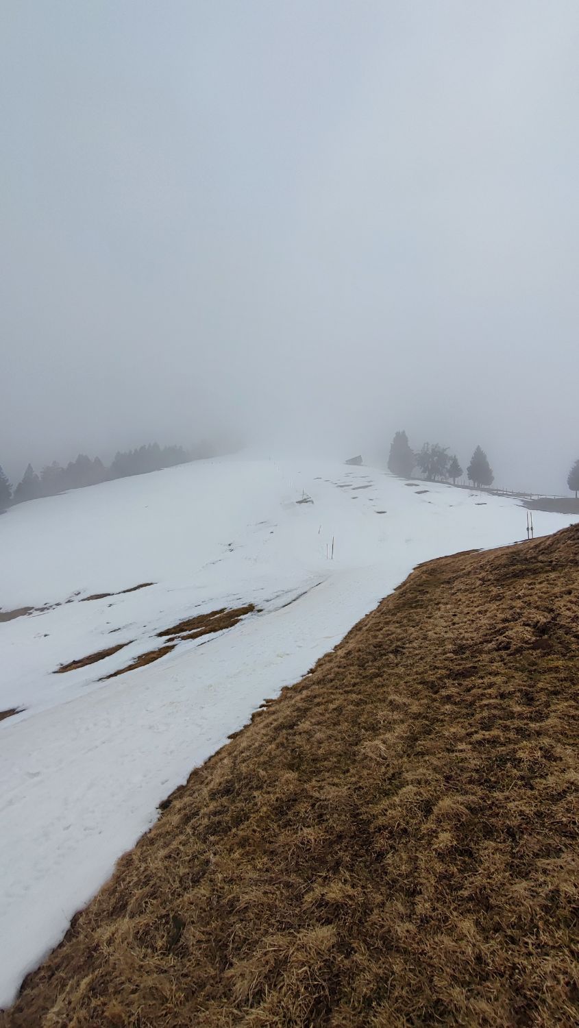 Bis Rigi First kein Schnee, anschliessend auf Skipiste bis zum Gipfel.