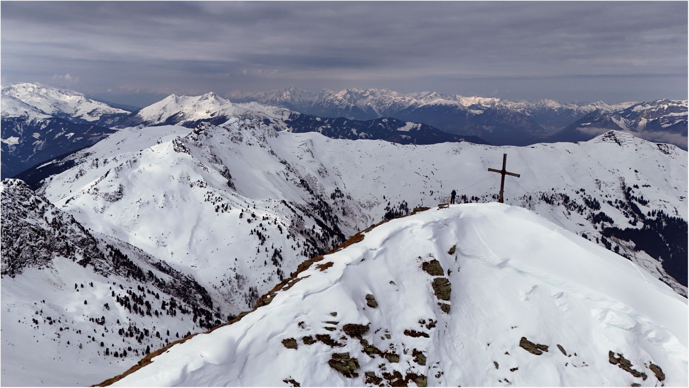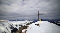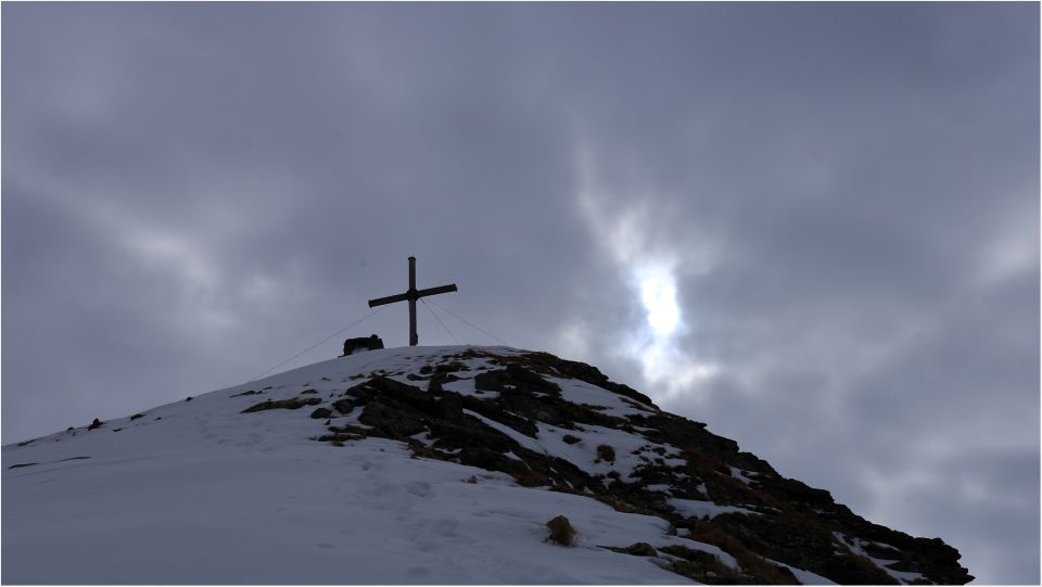 Überraschenderweise gab es ab Greitalm bis zum großen Stein am Gipfelgrat einen tragfähigen Harschdeckel, welcher bei der Abfahrt besten Firn bot.