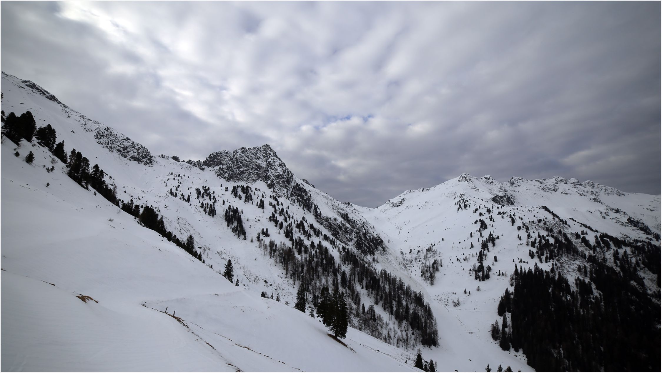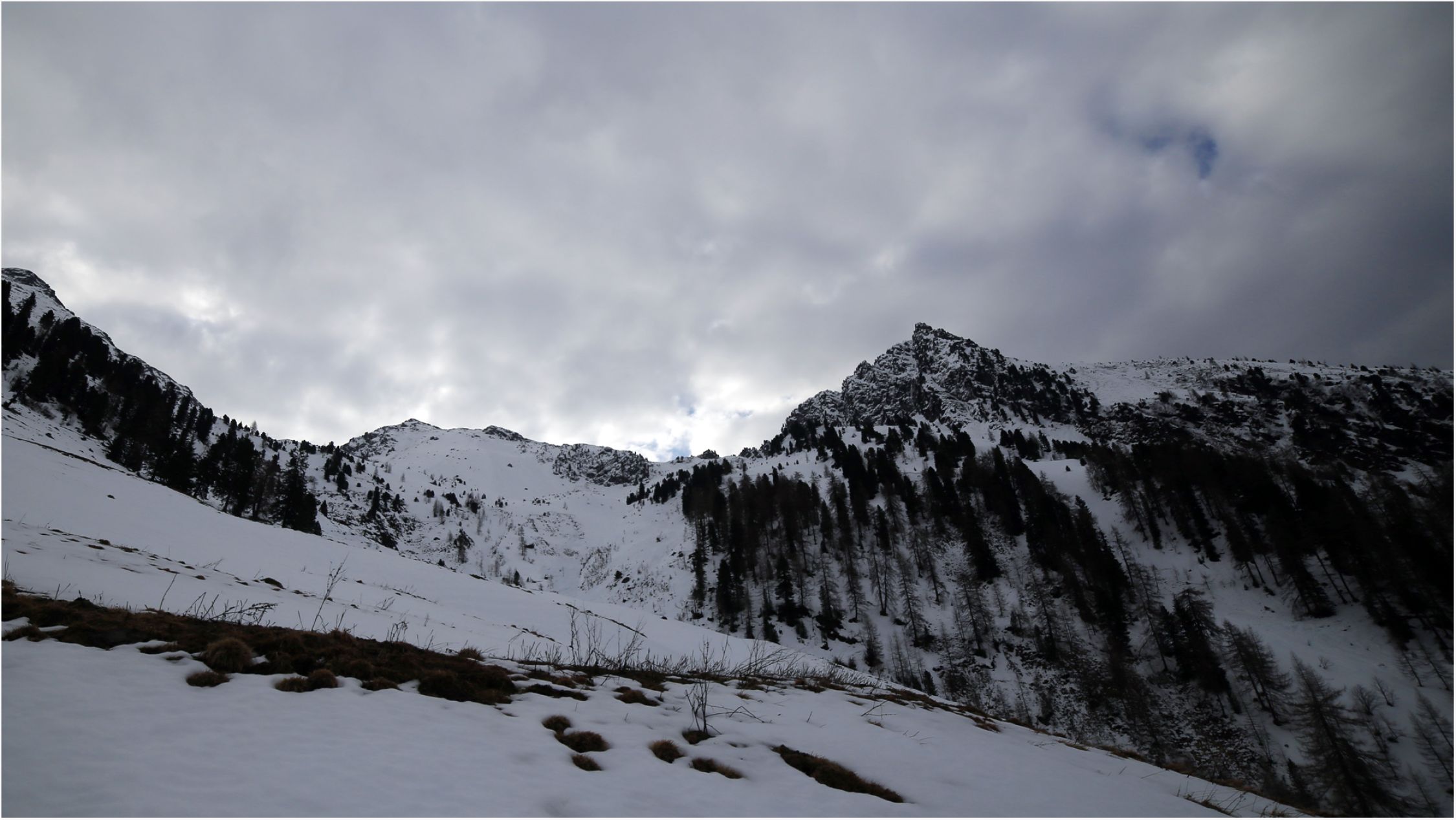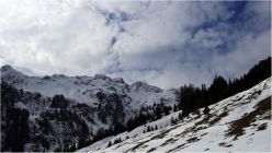 Während des ganzen Anstiegs wolkig, zwischendurch auch bedeckt.