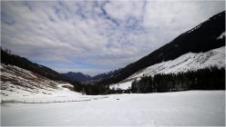 Wenig Schnee. Selbst der letzte große Schneefall ist schon wieder zur Hälfte weg und es schaut überall schon die Wiese raus.
