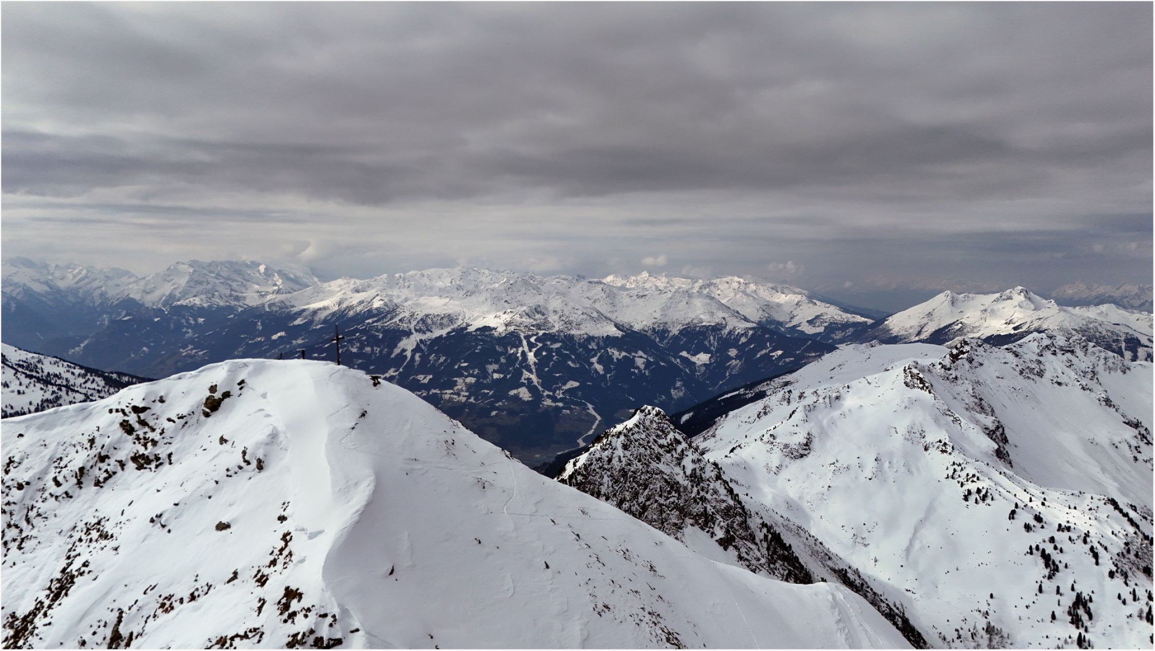 Auch die Gipfelabdachung hat genügend gepressten Schnee, man kommt bei vorsichtiger Fahrweise sogar ohne Feindberührung durch.