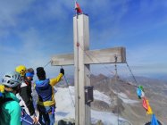 Gute Verhältnisse, Gletscher teilweise blank, linker Kamin vereist! Ansonsten trockener Fels im Gipfelaufschwung.