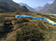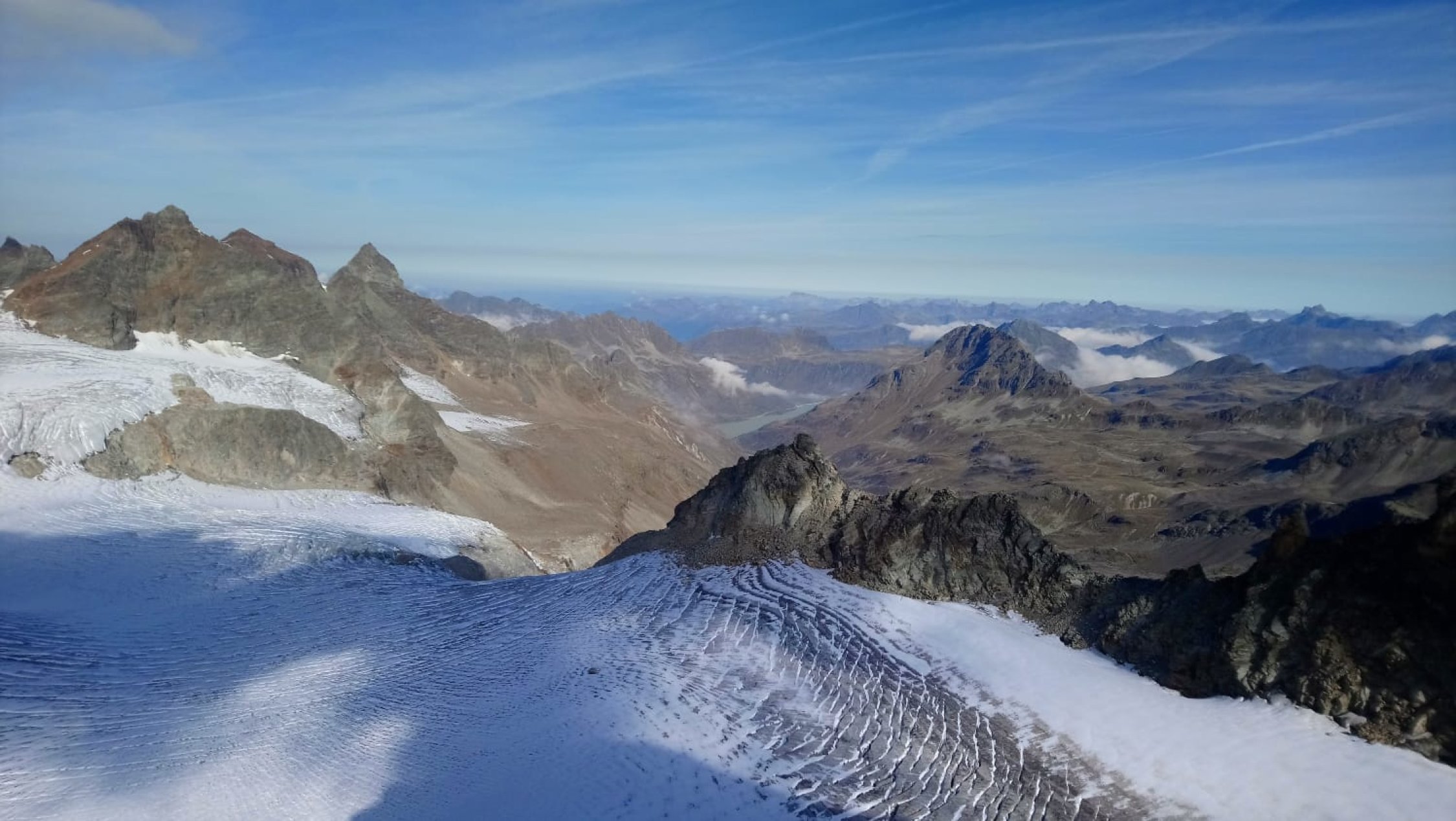 Am Gipfel 2-3 weitere Seilschaften schönstes Wetter und fast Windstill! Perfekt für unser Vorhaben mit dem Gleitschirm zurück zur Bielerhöhe zu fliegen. Ca. 30m unterm Gipfelkreuz dann aufgezogen und 15 min. später beim Auto auf der Bielerhöhe gelandet!