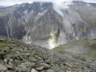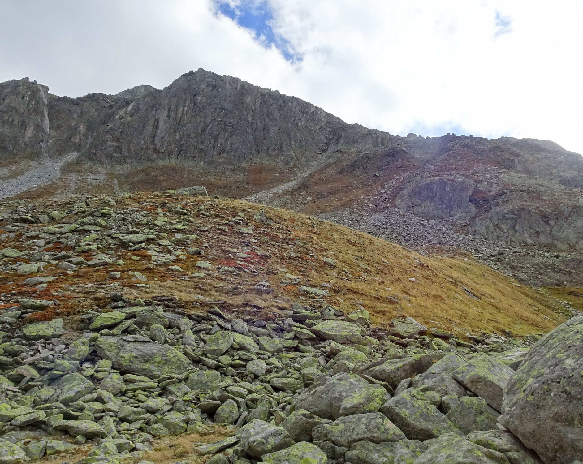 Wer sich nicht mit dem Stück T4 und den Blockhalden abmühen will, kann von der Mittelstation Flesche bis zum Gletscherblick und dann die Abzweigung nehmen die Richtung Furggulti und Risihorn Normalweg führt. Landschaftlich sehr schön und nicht so schwierig: T2/3.
