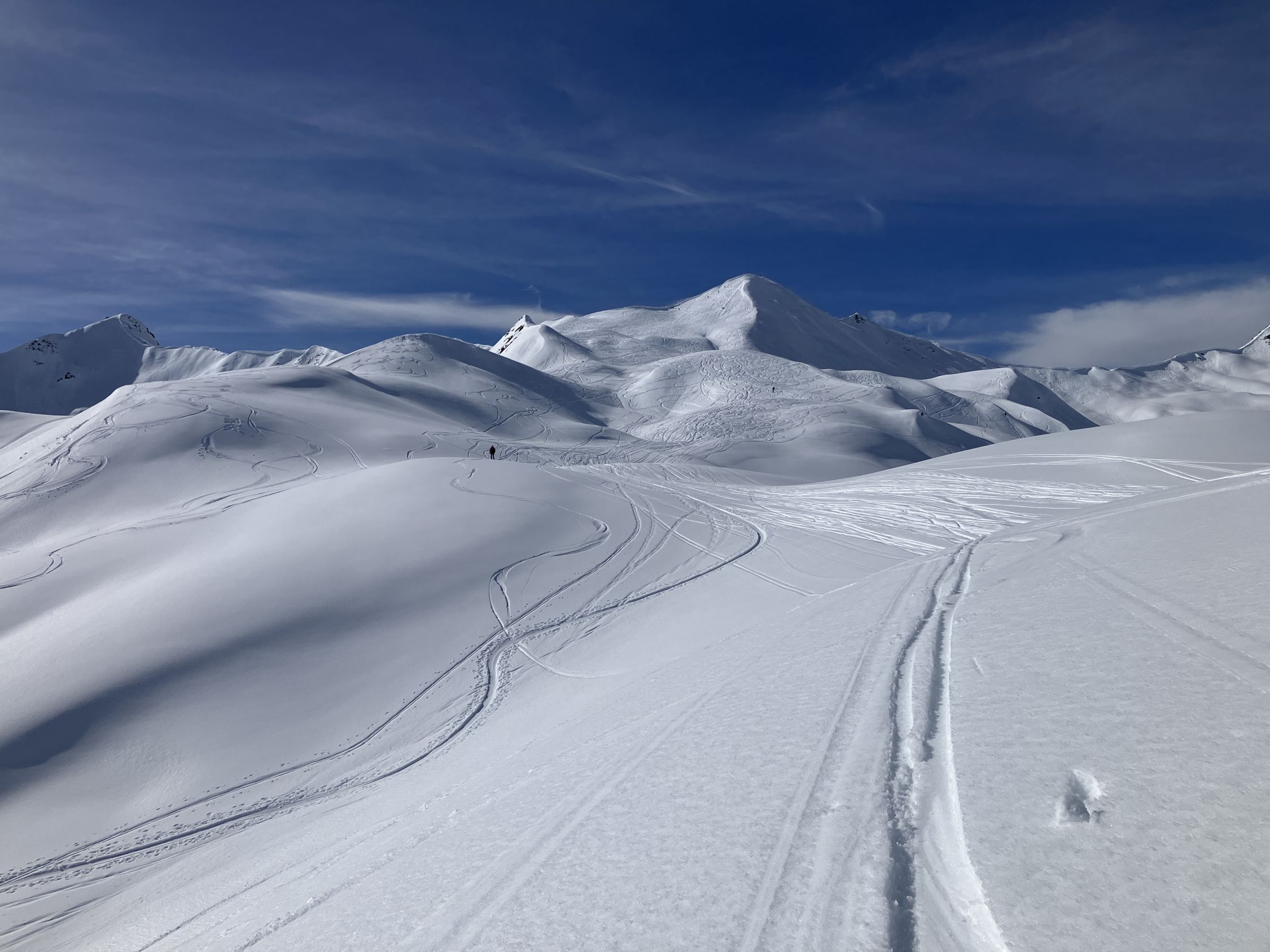 Tiptop bei bestem Wetter und Abfahrt um 10:30 Uhr - oben toller Frühlingsfirn und unten prächtiger Sulz, aber kein Pflätsch.
