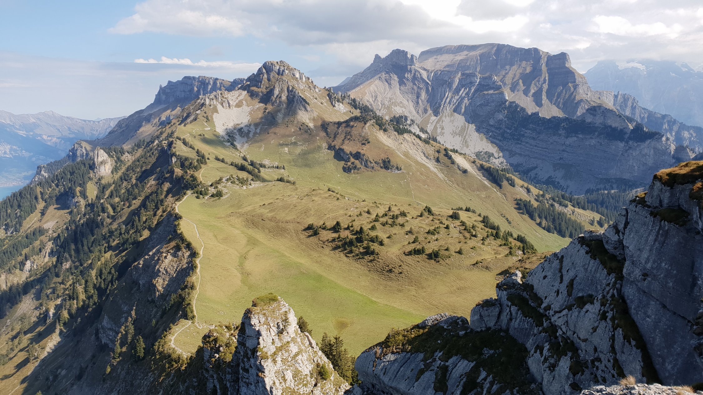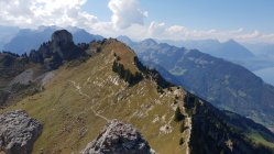 Auf neuen Wegen und dieser Aufstieg ist zwar länger als die anderen zur Schynige Platte, aber sehr wild und wegen dem Höhenunterschied und Ausgesetztheit auch relativ einsam. Der obere Teil ist wirklich schön und Alpin. Gross ist dann der Kontrast nachdem man den Laucherngrat erreicht hat wo man sich auf die Wanderroute Schynige Platte-First trift. Dann ist man pötzlich nicht mehr alleine...