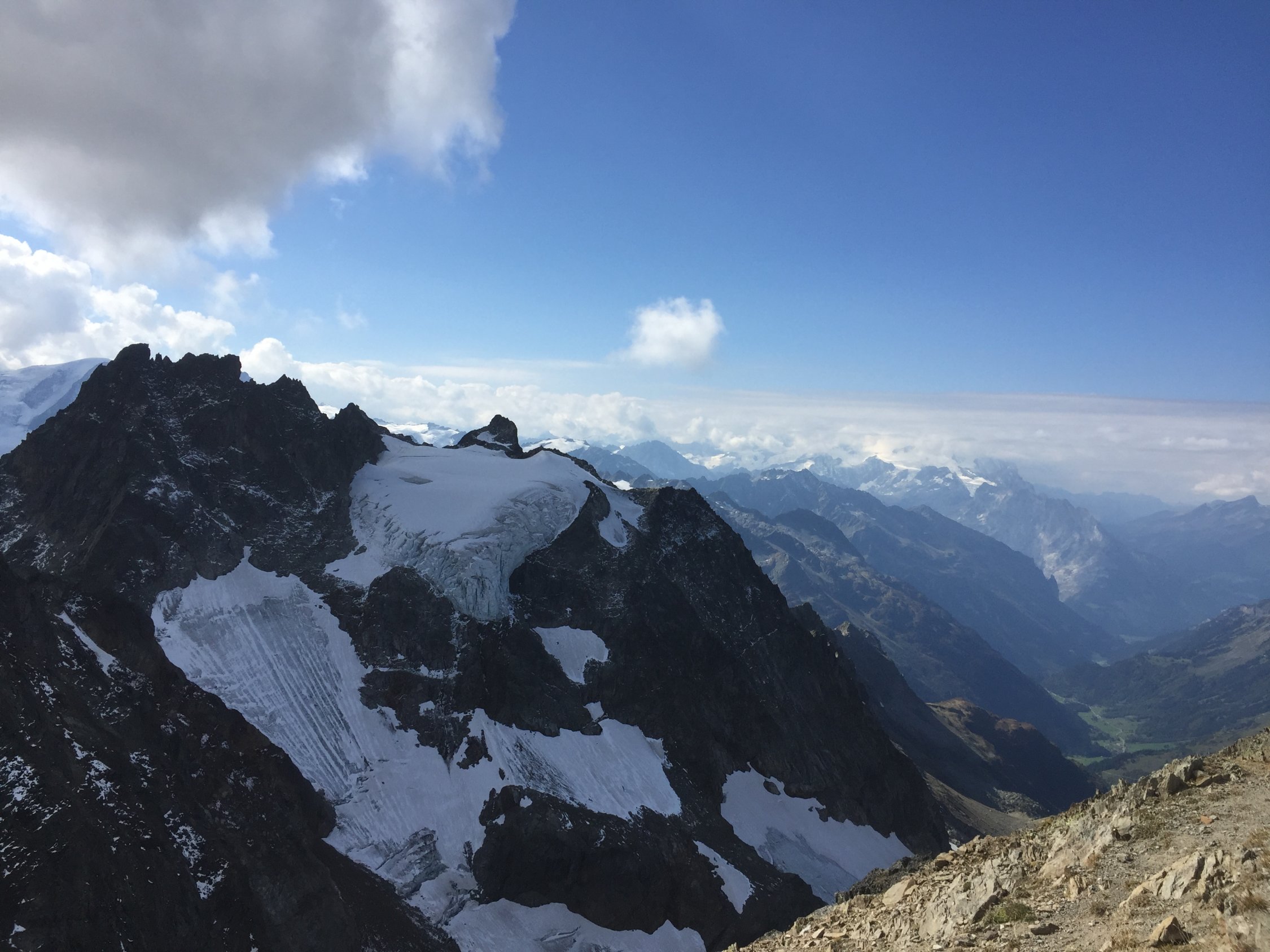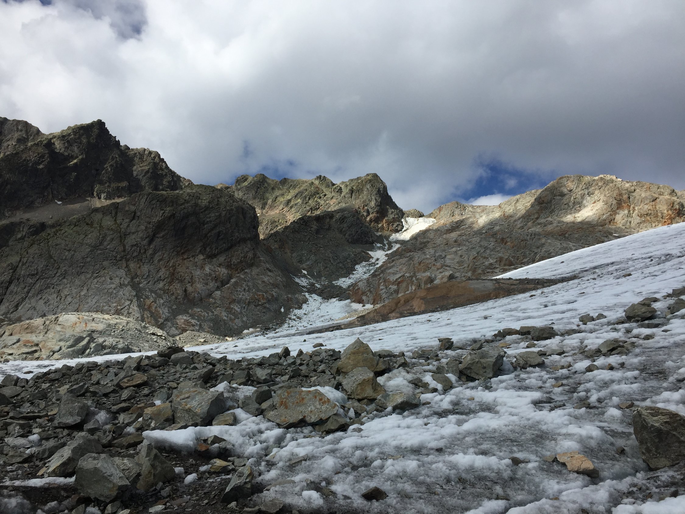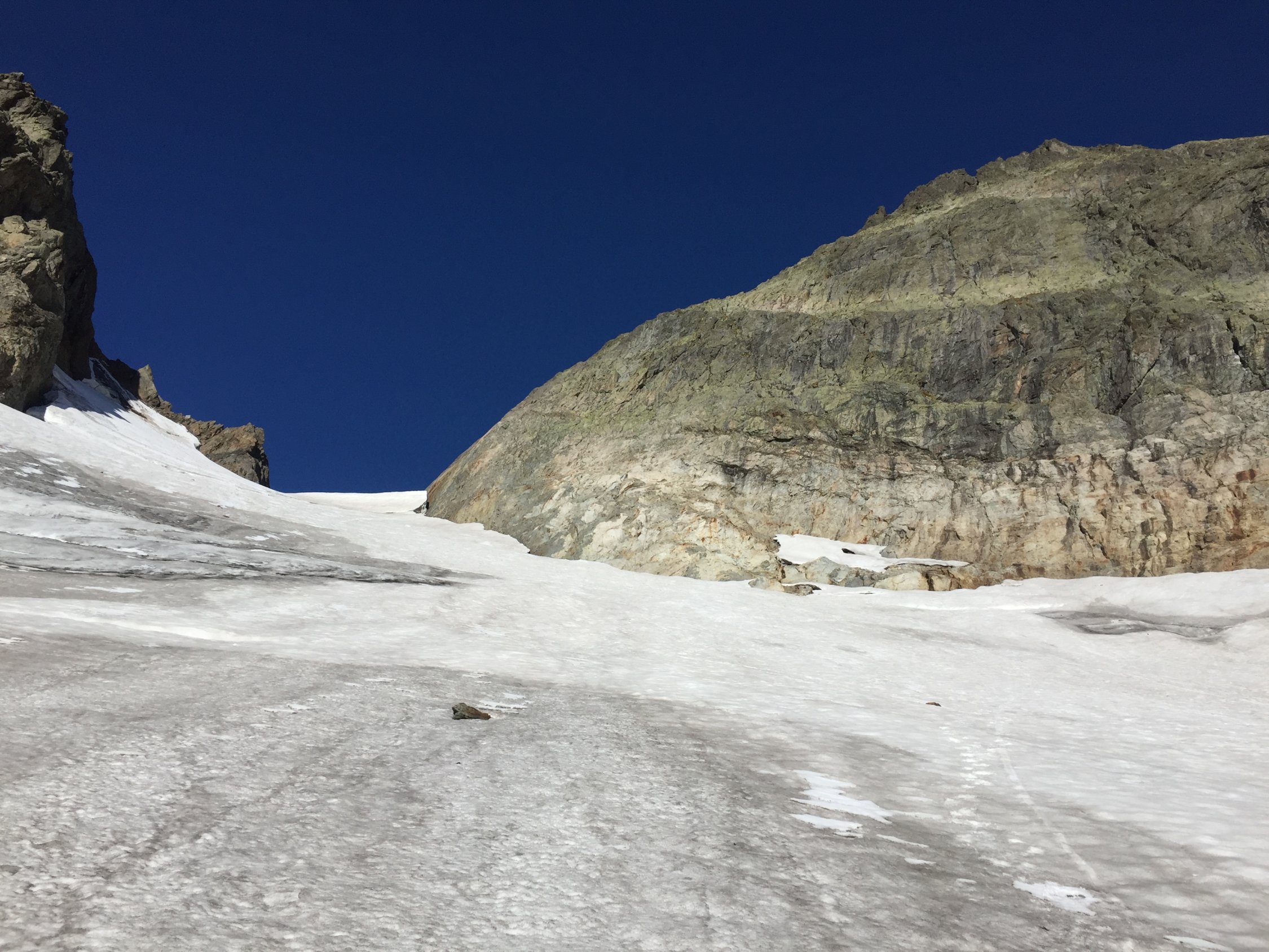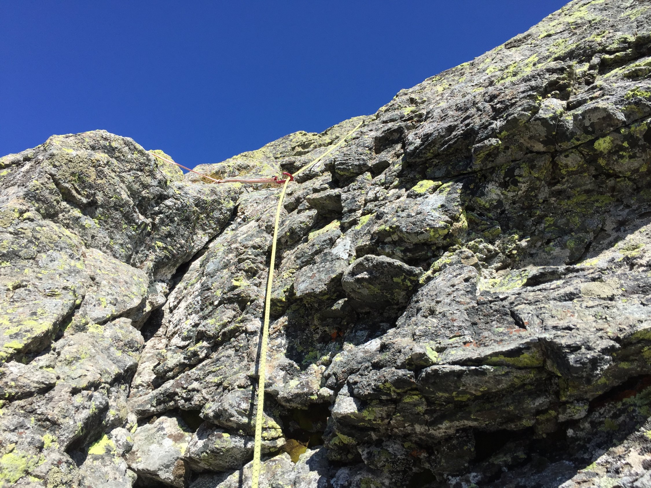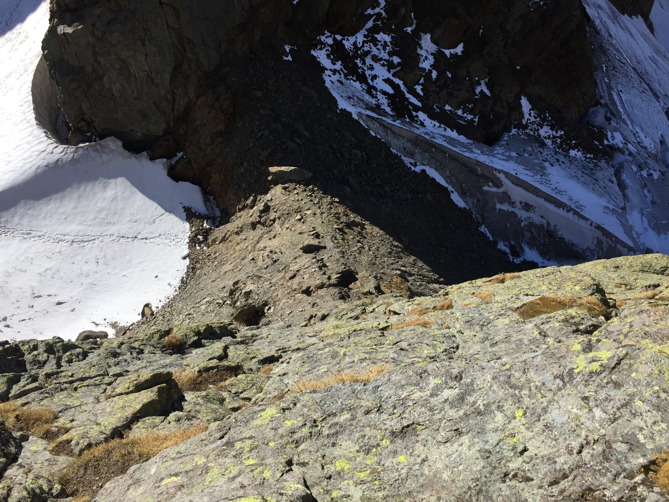 Zustieg ok, Kletterei trocken. Auf dem Grat teilweise schon Schnee, Abstiegscouli Eis, Geröll, Schutt.