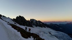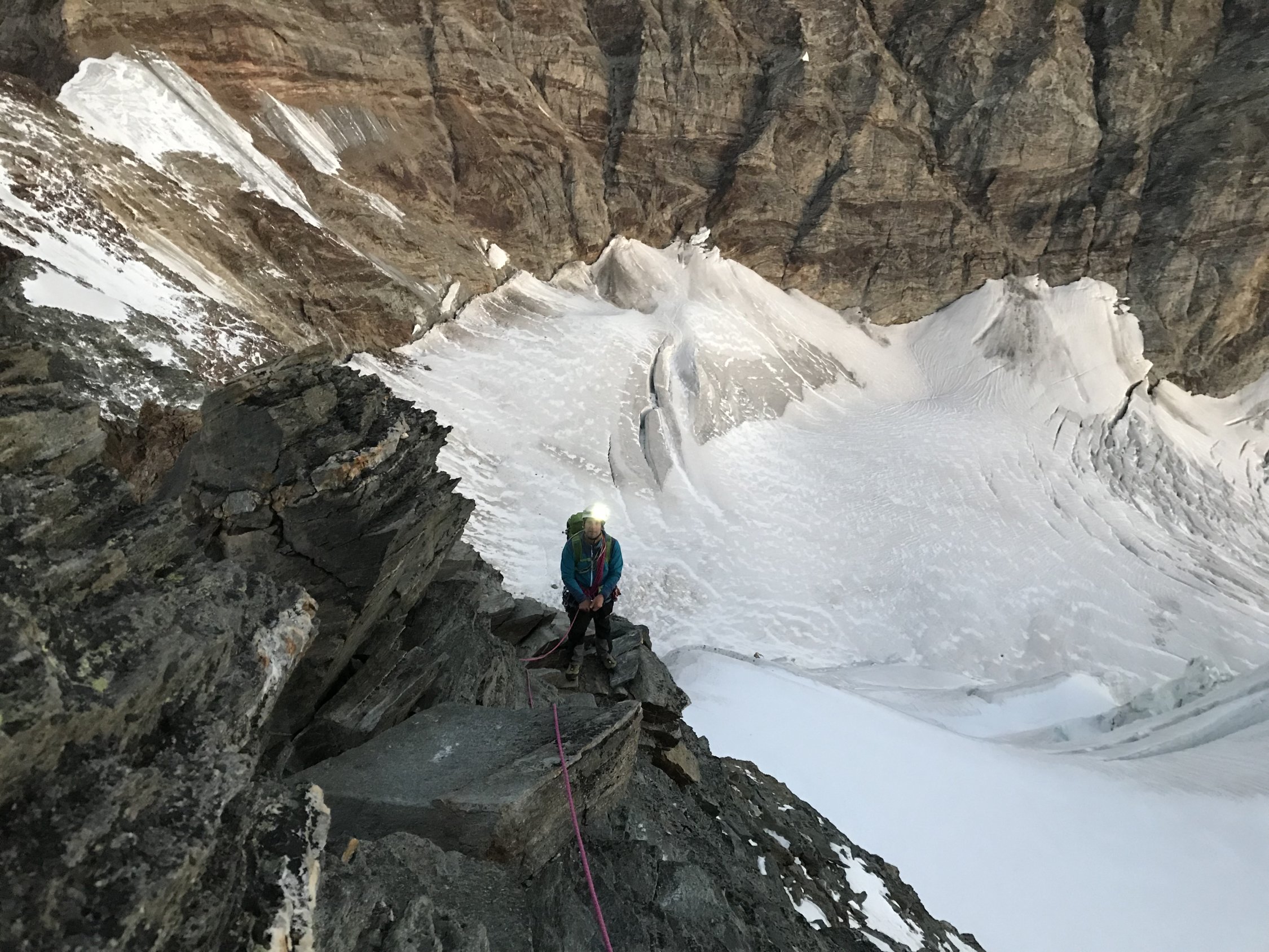 Die Verhältnisse hätten nicht besser sein können. Auf dem unteren Gletscher alle Spalten sicht- und gut umgehbar. Der komplette Grat war trocken und schneedrei. Der Firn war etwas aper, jedoch sehr serh gut begehbar. Der obere Grat ebenfalls trocken und schneefrei, konnte gut ohne Steigeisen begangen werden.