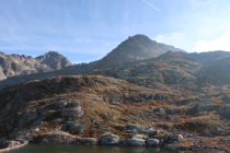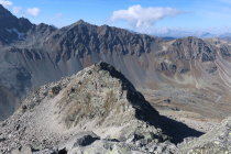 Abstieg von dort runter anfangs etwas heikel, da Schnee und Eis in der Spur waren. Unten auf der Grat dann wieder gut gangbar. Der Aufschwung durch das Gras hinauf zum Vorgipfel war nicht so schwierig, da staubtrocken. Vom Vorgipfel auf den Gipfel nochmals lustige Kraxelei, aber unschwierig.