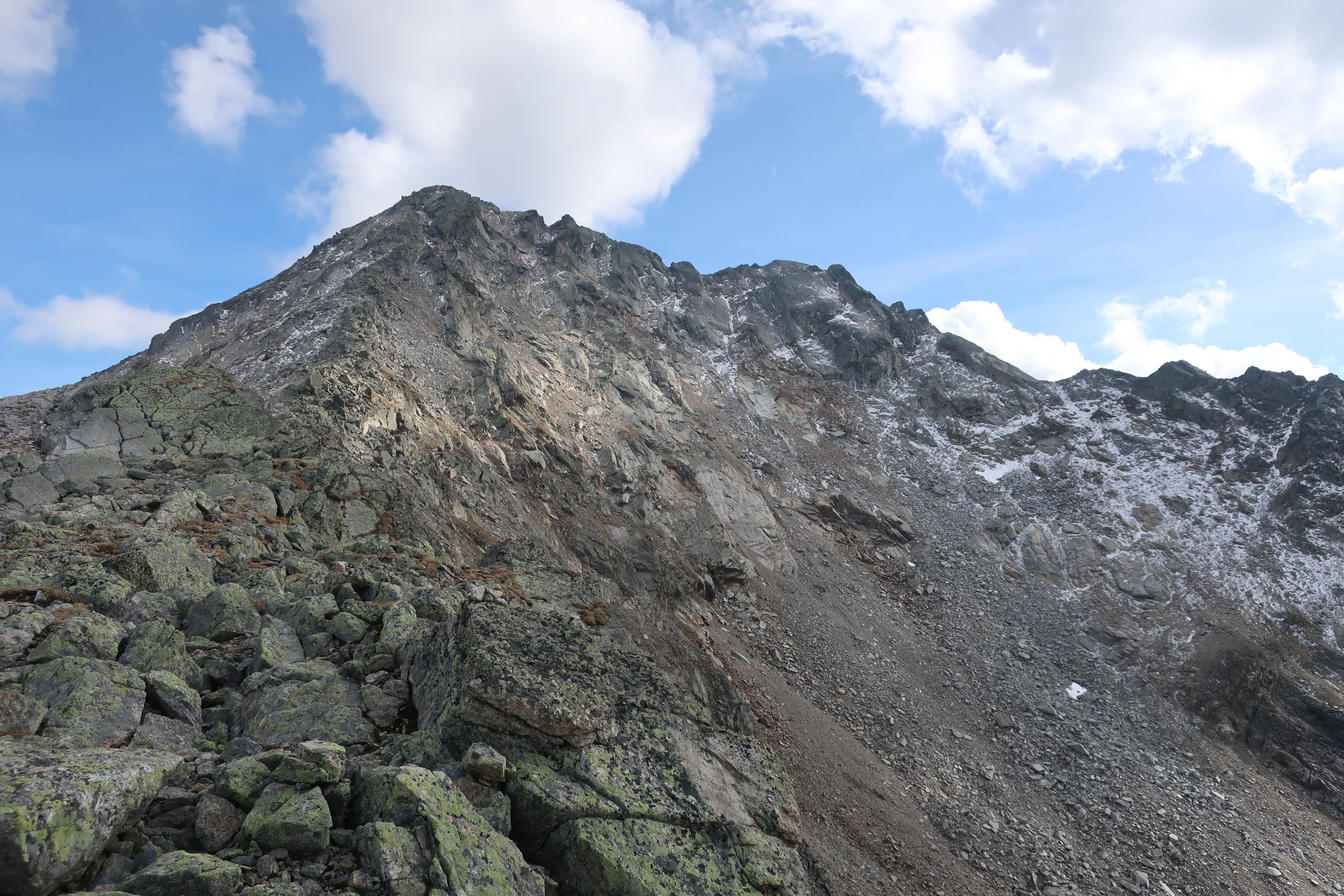 Im Abstieg auf der Normalroute sind wir die meisten Platten umgangen, da dort überall Schnee drauf lag. Wäre sonst sehr heikel gewesen.