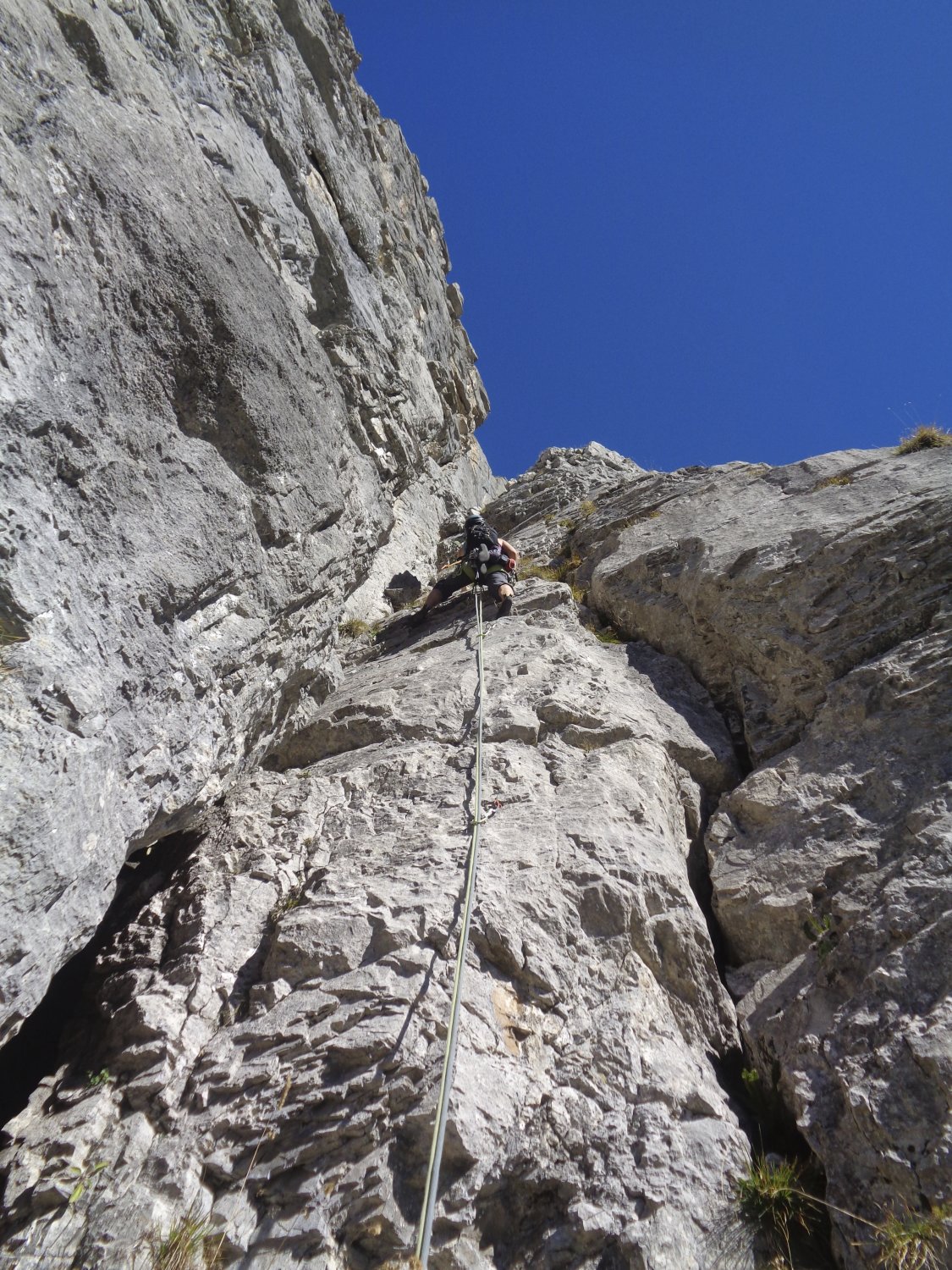 Ein Klausen-Klassiker für Liebhaber die auch gerne mal nur an Schlaghaken gesichert klettern und sich im Rissklemmen auskennen!