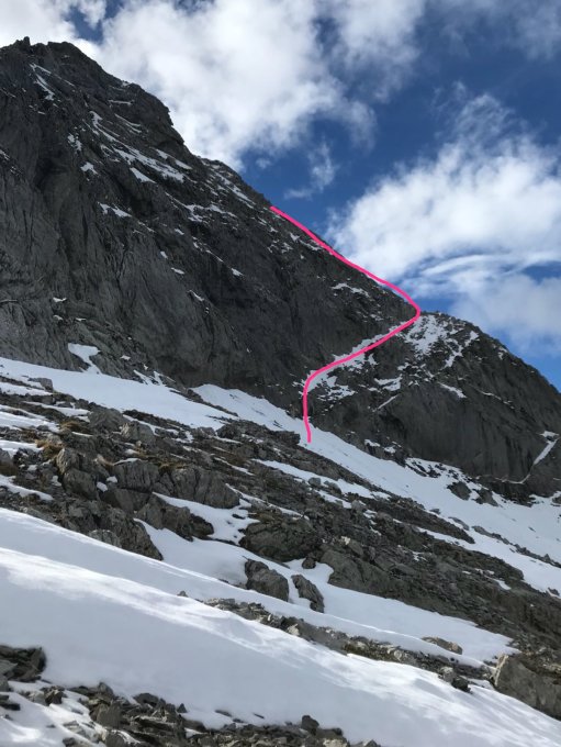 Wir haben uns dann für das dritte entschieden. Der erste Aufschwung geht dank dem Fixseil relativ gut. Anschliessen haben aufgrund des vielen Schnees das ganze Band bis auf den Westgrat gesichert. Dies dauerte relativ lange, war es uns aber Wert. Auf dem Westgrat haben wir dann endlich trockene Verhältnisse angetroffen.