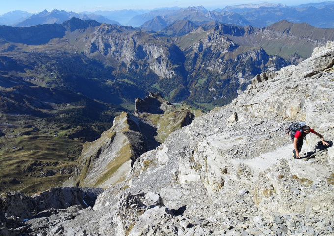 Huetstock (2676m): via geschweifte Höhle über die Südwestflanke und Grat