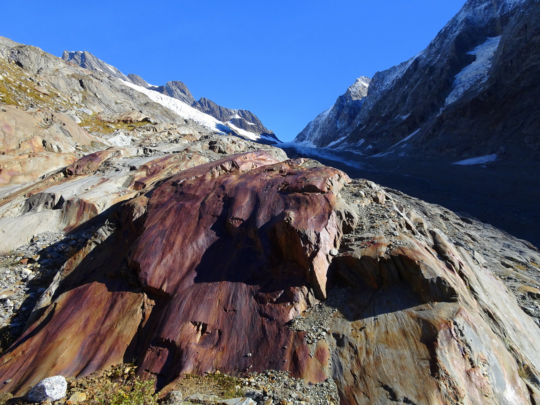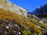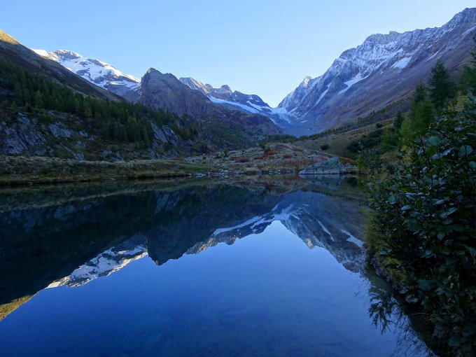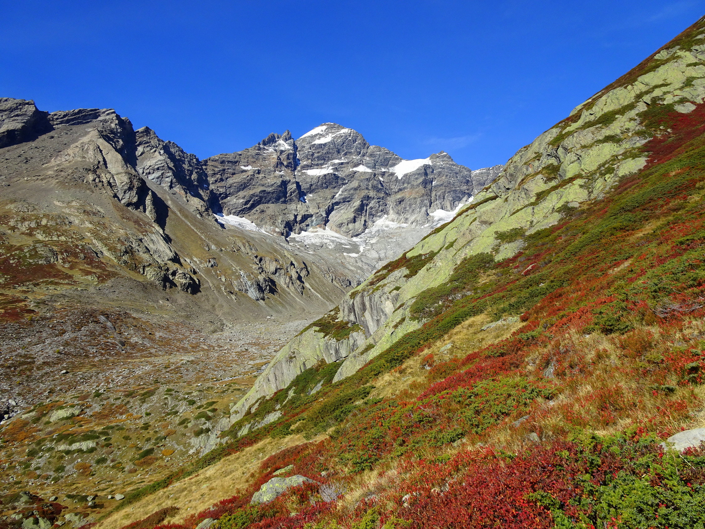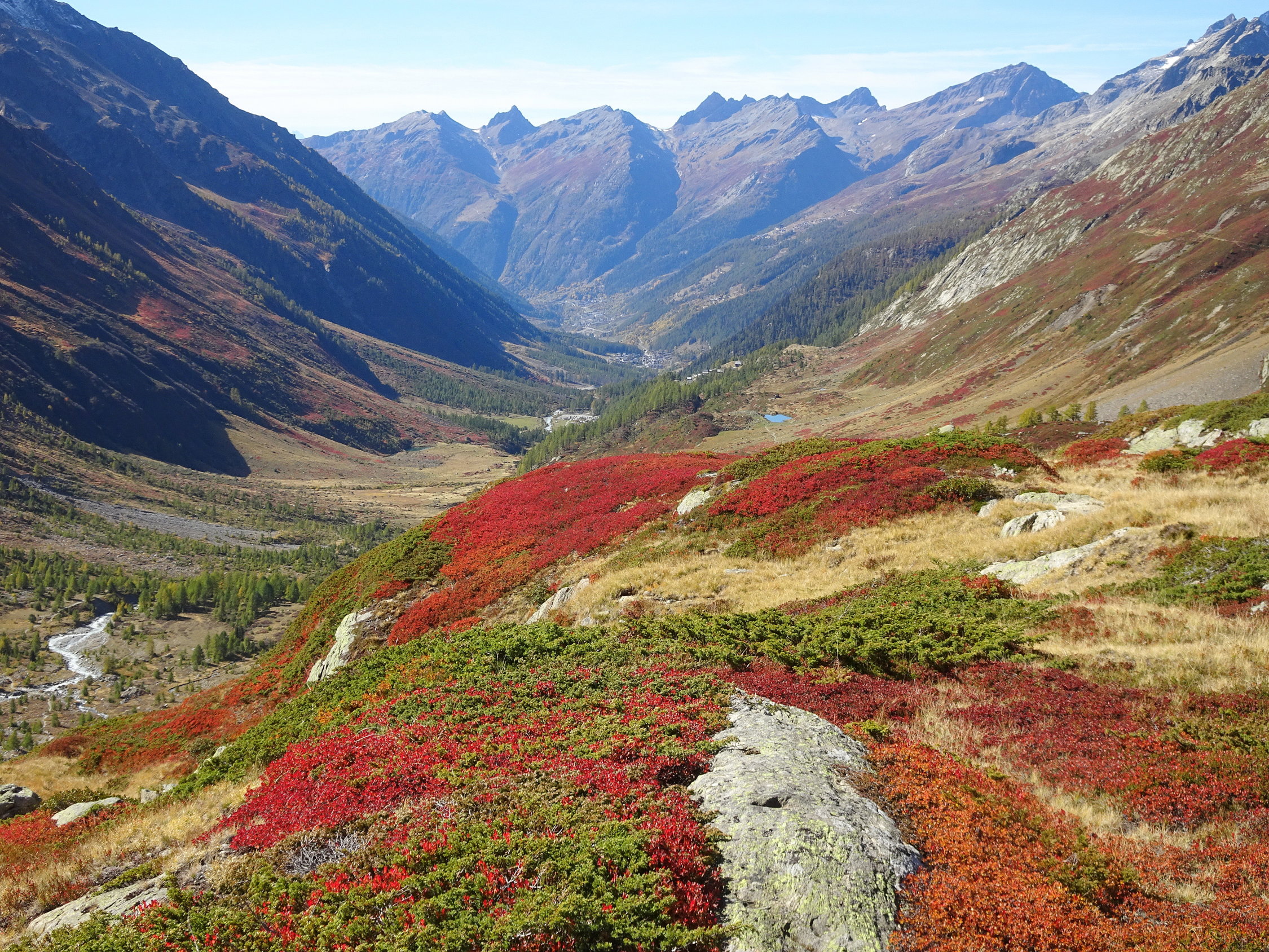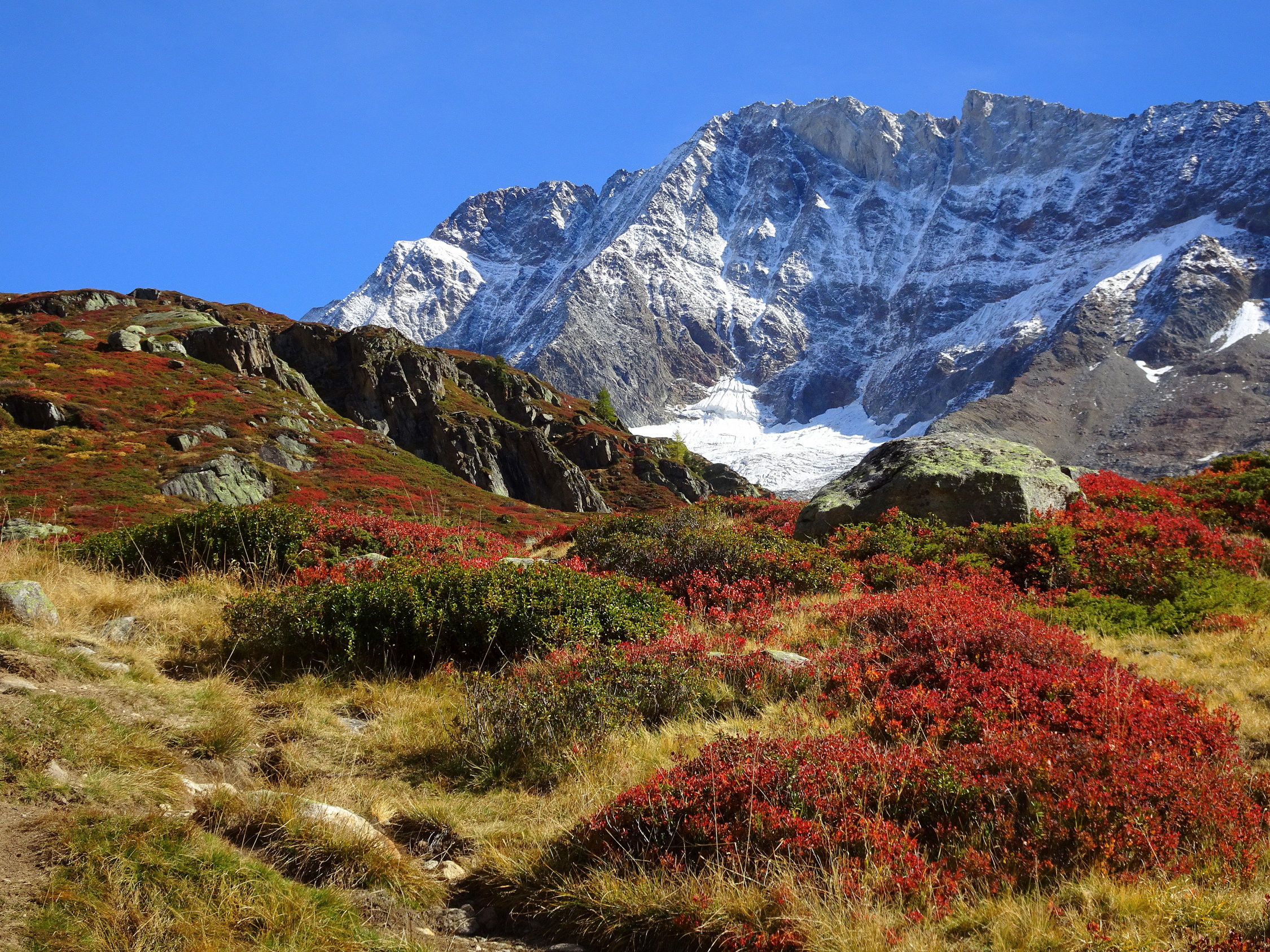 Wollte schauen wie es mit den gelben Lerchen steht. Gelb sind nur ganz wenige, es hat wenige Frostnächte gegeben, dafür sieht der ganze Südhang wie wenn er brennen würde. Die Blätter der Beerenstauden sind nun voll rot. bis die Lerchen gelb werden, sind die Beerenstauden nicht mehr so rot, eher braun. Ein grossartiges Erlebnis das von Allen bewundert und genossen wurde.