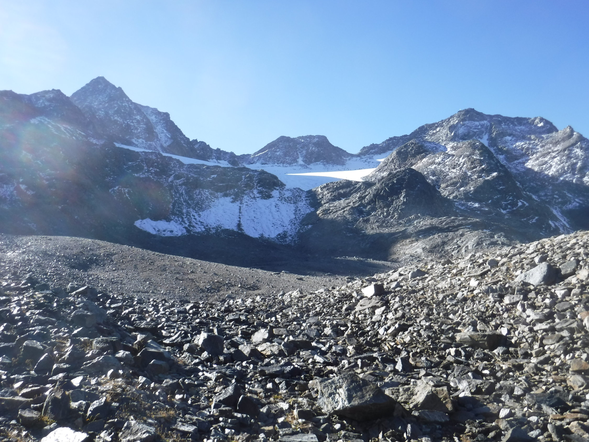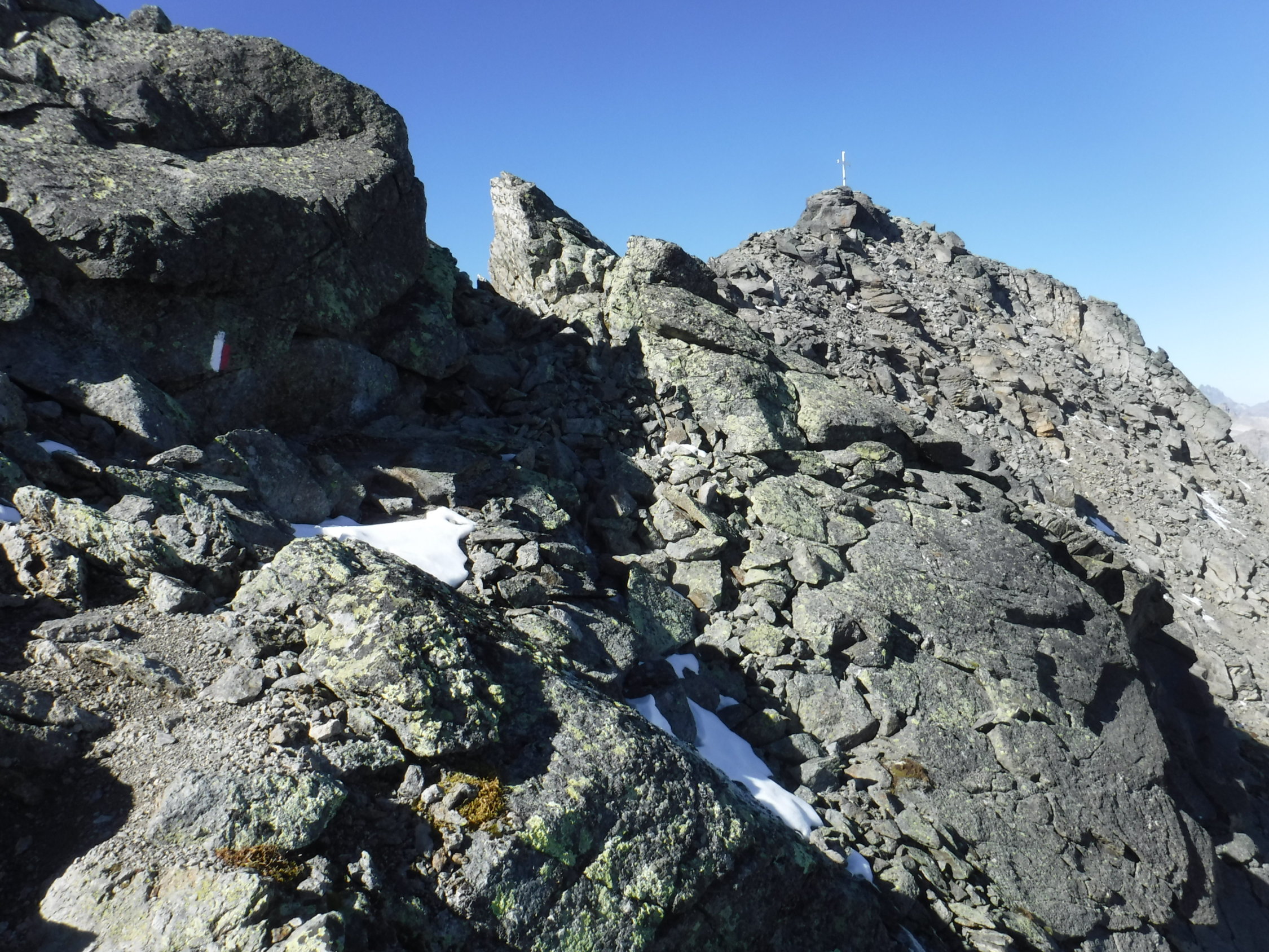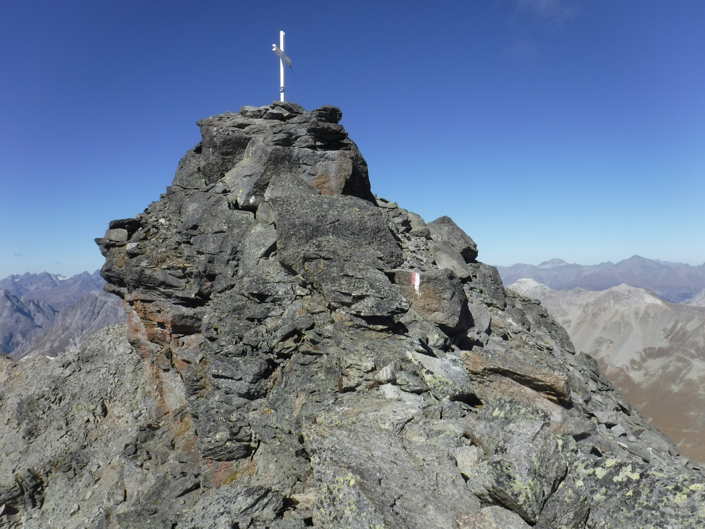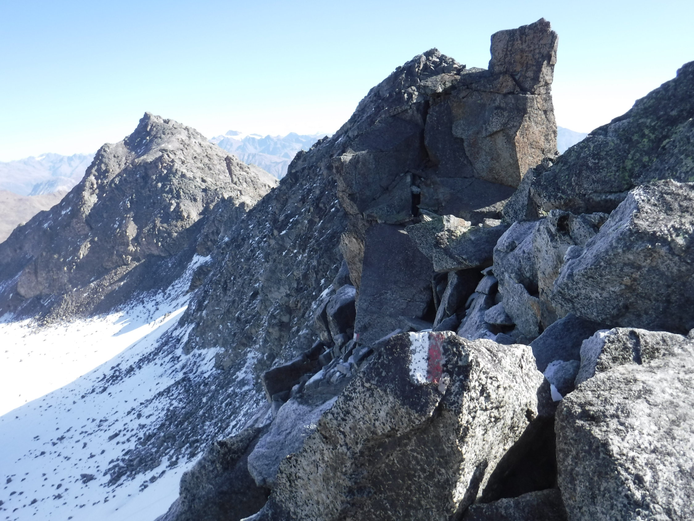 Im Aufstieg vor dem Container (P 2237) zwei Jäger angetroffen. Auf dem Vadret da Sesvenna sah ich 2 Einzelgänger von der Sesvennahütte kommend, von dem mir einer auf dem Gipfelgrat absteigend wieder entgegenkam. An namenloser Scharte auf dem Ostgrat traf ich einen Berggänger an, welcher über die südtiroler Südseite aufstieg, jedoch den Blockgrat sein ließ.