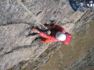 -da die Route nicht abgeklettert ist auf loses Material achten, wenig aber vorhanden.