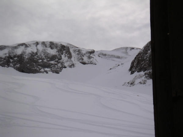 Weg von Weglosen sehr gut präpariert. Gipfelregion etwas verblasen, sonst herrliche Pulverschneehänge, teilweise noch unverspurt. Auf Steine achten!