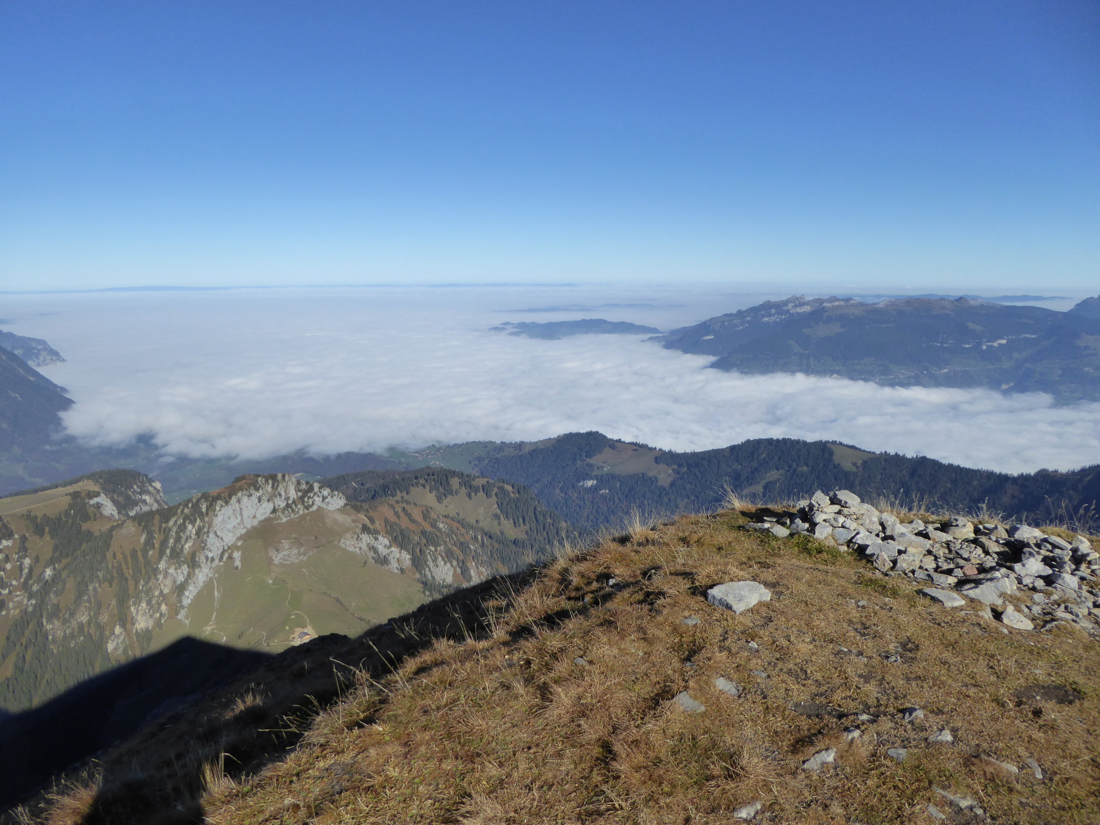 Eine wilde und im Moment einsame Gegend. Das Nebelmeer war eindrücklich und schwappte ab und zu bis nach Kiental.