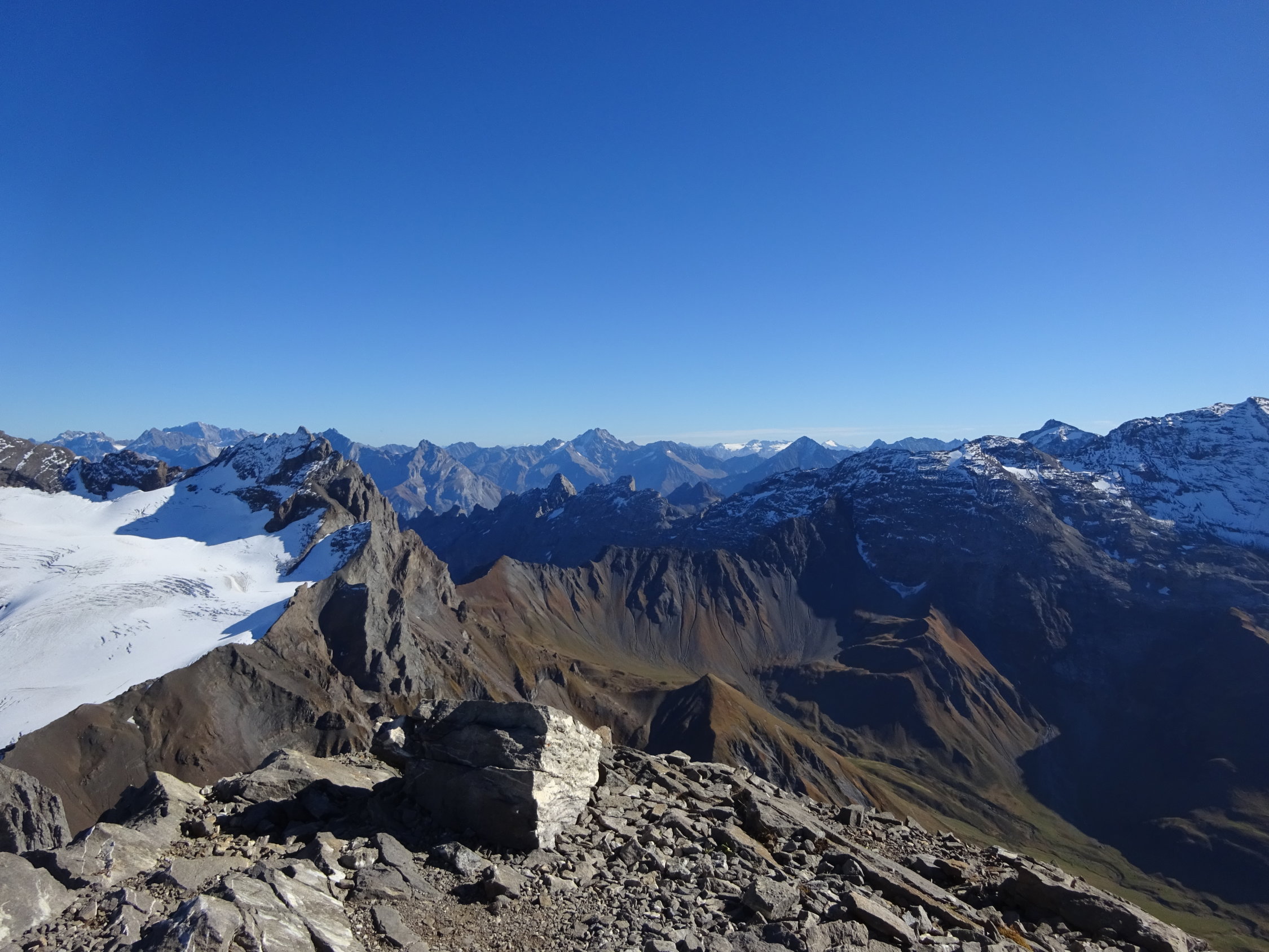 Ausserordentlich klare Sicht vom Gipfel, tolle Rundsicht.