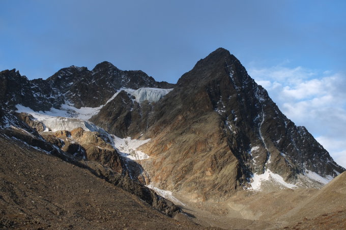 Herbststimmung auf dem Kaunergrat - ein Traum. Bisher hat es nur in der Nordseite Schnee, der Großteil der Route (v.a. der Grat selbst und die südseitigen Passagen) ist komplett trocken. Steigeisen und Pickel sind bei den aktuellen Verhältnissen nicht nötig.