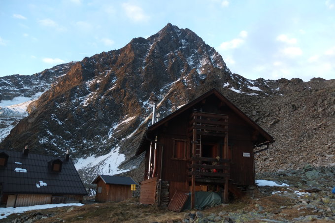 Im angrenzenden Raum gibt es Schlafgelegenheiten für 6 Personen (zur Not auch 8, mit mehr Personen wirds problematisch). Toilette, Ofen, Kochgeschirr, Holz und sogar elektrisches Licht sind vorhanden. Wir hatten zwei Nächte ganz für uns, am Freitagabend gesellte sich eine Zweierseilschaft zu uns. Zu fünft war es dann schon ziemlich eng. Man muss sich halt arrangieren.