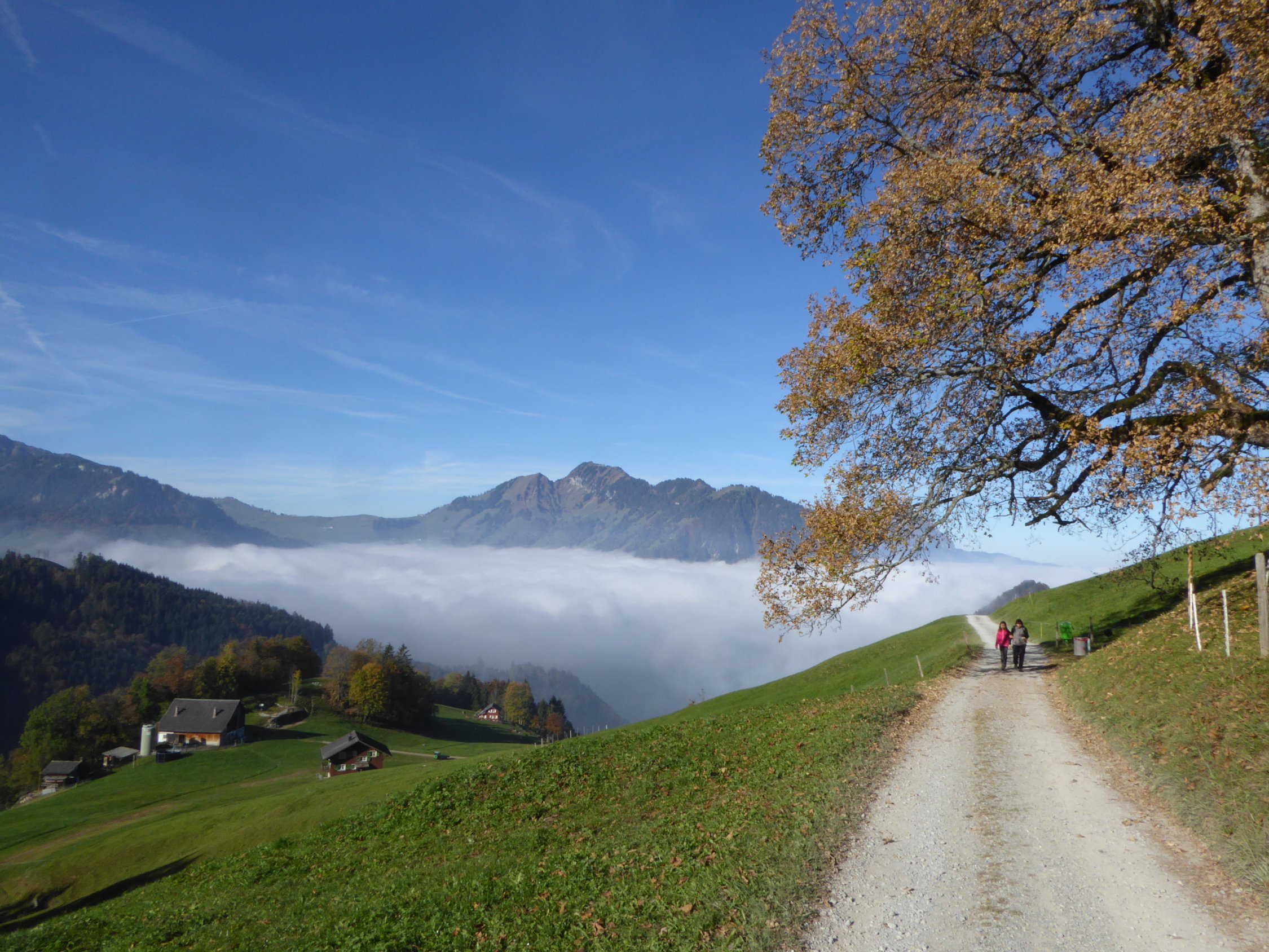 Start um 10:30 Uhr in Niederrickenbach. Eine günstige Zeit, da die Sonne über den Brisen kommt und die Aufstiegsroute auf den Haldigrat in dieser Jahreszeit noch grösstenteils in der Sonne liegt. Aufstieg zum Berggasthaus und weiter über den Haldigrat bis zum Gipfel. Abstieg auf gleicher Route. Abstieg nach Alpboden mit freundlicher Unterstützung der Haldigrat AG (Sessellift). Die Tage werden nun kurz und der Aufenthalt auf dem Gipfel und der Sonnenterasse des Berggasthauses ein Genuss, von dem wir uns nur schwer trennen konnten