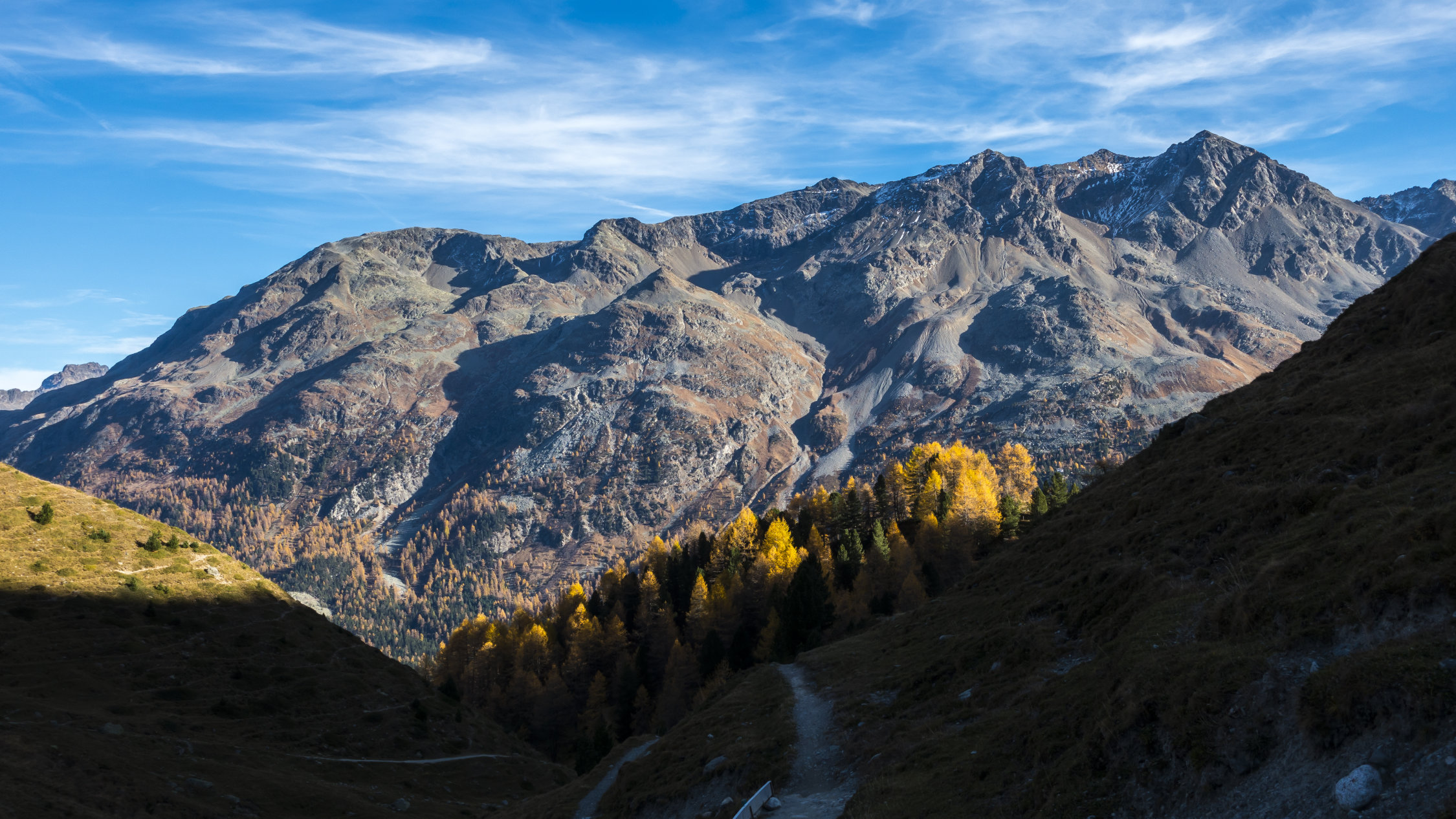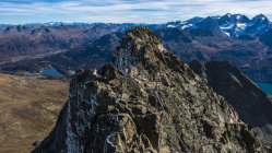 Traumtag, mild und windstill. Alles trocken, nirgends Schnee. Der lange Aufstieg über den Grat zum Gipfel ist technisch nicht anspruchsvoll, bedingt aber Trittsicherheit und Schwindelfreiheit. Die Rundtour über die Alp Suvretta ist zwar lang, aber sehr abwechslungsreich und landschaftlich deutlich schöner als der Aufstieg von der Julierpassstrasse. Besonders der Höhenweg zurück zur Passstrasse bietet herrliche Ausblicke in die momentane Farbenpracht um die Engadiner Seenlandschaft.