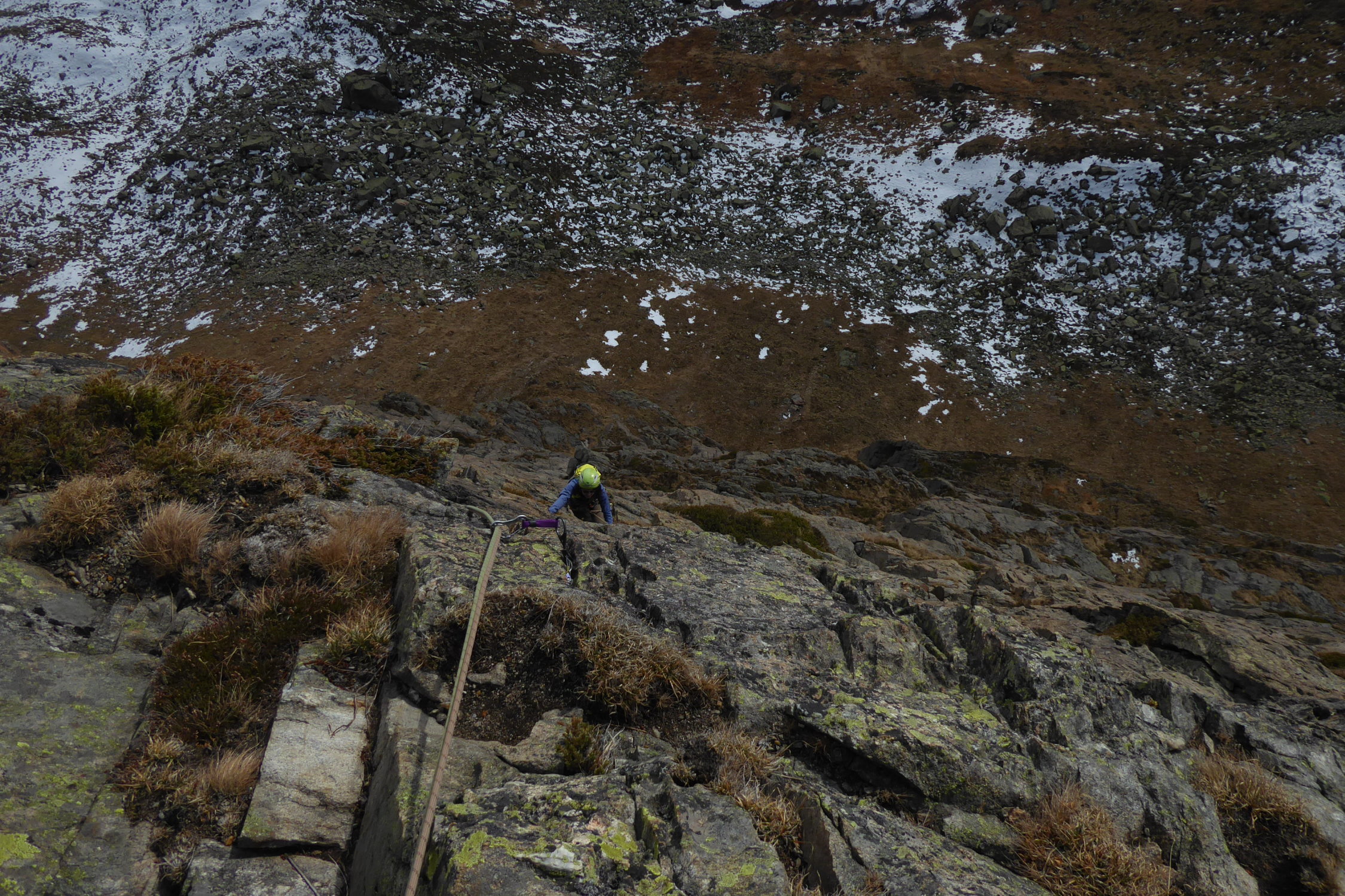 Wand so gut wie schneefrei 99,9%. In der 5ten Seillänge teilweise nass aber i.o.. In der 6ten Seillänge Schlüsselstelle nass, aber gut abgesichert.