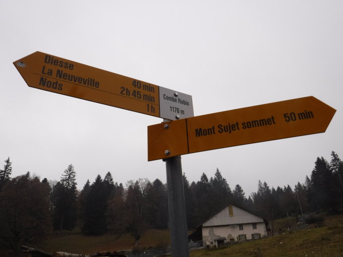 Diesse – La Rochalle – P 987 – Combe Robin – Combe d’Enfer – Mont Sujet sommet – Bergerie du Haut – P 1288 – Bergerie du Bas – Sentier des sculpures – Hochbehälter – P 865 – Sentier botanique - Diesse