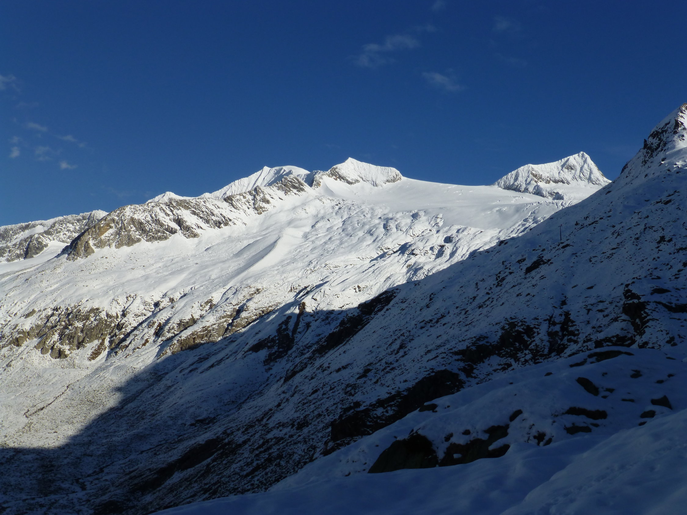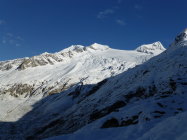 Durchgehend Schnee ab 2200. Dieser war aufgrund der nächtlichen Ausstrahlung komlplett durchgefroren und somit tragfähig. Ab 2600 m gabs bei der Abfahrt sonnseitig leichte Firntendenz. Gletscher weist pistenähnliche Verhältnisse auf und ist aufgrund des markanten Italientiefs mittlerweile gut eingeschneit. Auffahrt zur Johannishütte 2100 m mittels E-Bike, sodass sich das Skitragen in Grenzen hielt.