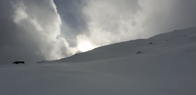 Start der Tour am 8.45 Uhr beim Oberalppass, das Wetter schlechter als erhofft, die Schneedecke gut gesetzt auf tragender Unterlage, schon bald kam etwas Puverschnee noch dazu, am Ostgrat dann die Schlüsselstelle der Tour, der kurze Abstieg auf die Südseite hatte fast kein Schnee, ein Pickel währe hilfreich gewesen, der Schlussaufstieg zum Gipfel dann wieder ohne Probleme , am Gipfel dann viel Wind mit wenig Aussicht, die Abfahrt von den Schneeverhätnissen her sehr gut, aber die Sicht mit etwas Nebel war nicht so toll.