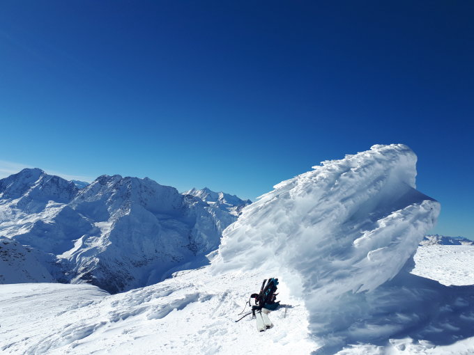 Pour ce début de saison, direction le col du Simplon pour être sûr de trouver la neige. On chausse direct à l hospice, et l enneigement est vraiment bon pour mi-novembre ! Peu de pierres apparentes. Très bon regel jusqu'à 2600 environ.. ensuite neige meuble, mais le vent à fait son effet et disparaître pas mal de neige tombée ces dernières 2 semaines. La corniche au col est déjà imposante mais se contourne facilement. A ski jusqu'au sommet. Première descente sur le Alpjergletscher jusqu'à 3200 environ pour les 1eres courbes en poudreuse tassée.. puis repautage jusqu'au col.. descente jusque sous le Hubschhorn plutôt bonne, puis un peu de neige dure et de la moquette pour finir au dessus de l hospice.. que demander de plus :-) bonne saison à tous !
