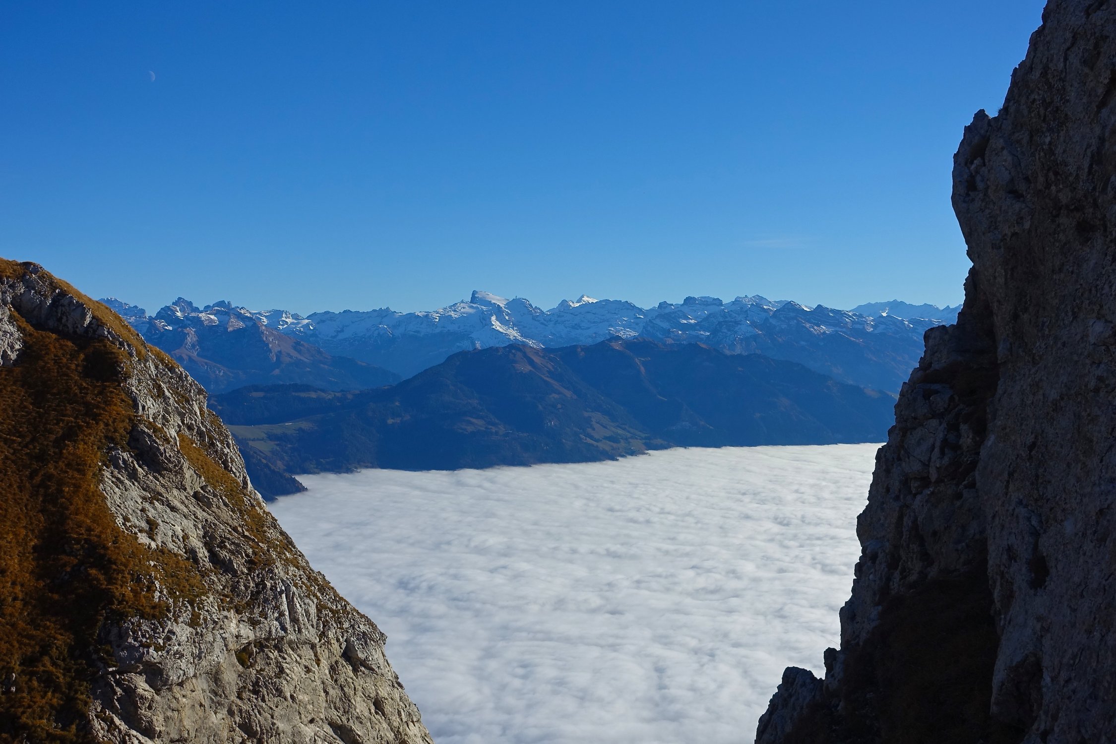 Top Verhältnisse und ganz einfach fantastisch! Unten grau und kalt, oben blau und warm! Die Mattalpplatte sowie die Galtigentürme bieten herrliche Kletterei im 3. und 4. Schwierigkeitsgrad. Gut ausgerüstet. Unter kundiger Führung bieten diese Routen auch für Anfänger nebst prachtvollen Tiefblicken auf den Vierwaldstättersee (oder das Nebelmeer wie heute), schöne Klettererlebnisse.