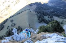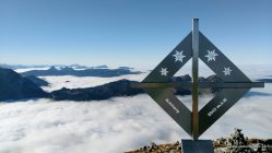 Nebelmeer zuerst auf 1200 m, dann 1400 m. Darüber sonnig und warm. Auf der Kante und auf dem Gipfel gelegentlich kühle Brise. Oberhalb des Nebel alles trocken und ohne Reif. Aufstieg lag bis P1948 im Schatten. Fels kühl, doch ohne Handschuhe gut machbar.