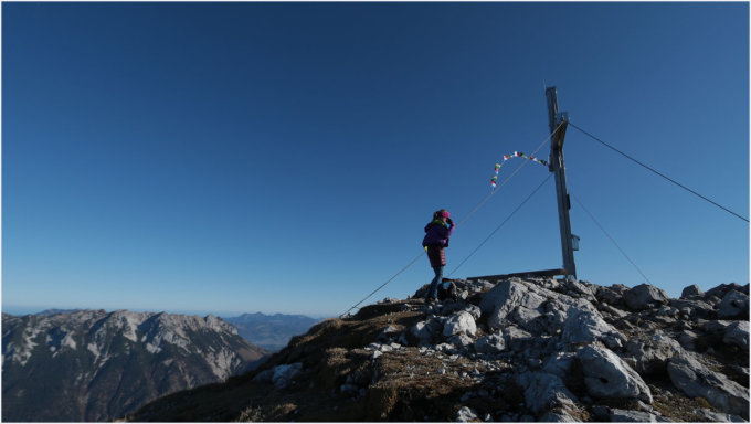 Erneut wunderschöner Spätherbsttag im Kaiser, wider Erwarten nicht viel los. Leider recht frisch auf dem Gipfel, erst in den Latschen wärmer.