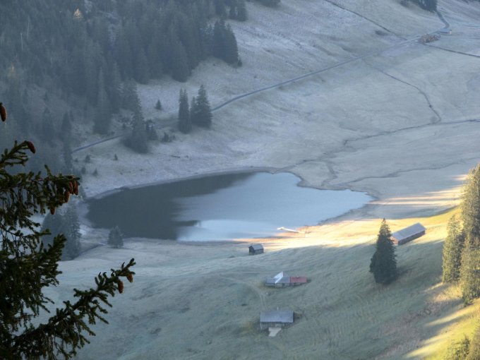 Am Start in Scharten noch Nebel bei Raureif und Minus 2 Grad. Der Nebel löste sich aber schon am Gräppelensee auf. Dann Sonne bis zum Schluss.