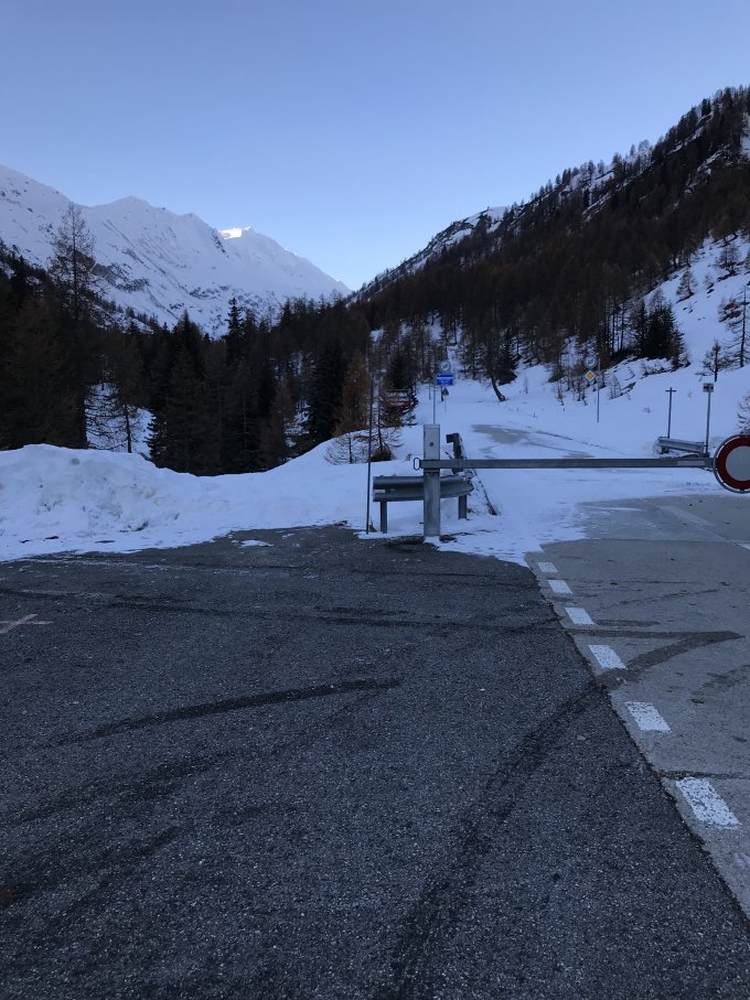 Deutlich mehr Schnee als erwartet im hinteren Bedretto. Skis können am Parkplatz angezogen werden und auch bis dort wieder abgefahren werden. Passstrasse ab All Acqua schneebedeckt. Man kann ohne Skis abziehen aufsteigen. Alles sehr hart. Harscheisen Pflicht mitzunehmen.