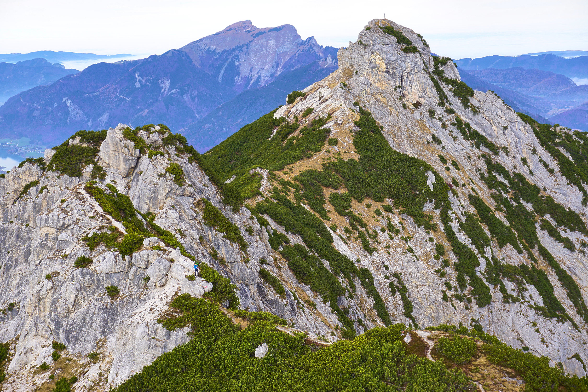 Von Ramsau bei Strobl über die Sonntagkaralm auf den Rettenkogel und den Bergwerkskogel Beim Gasthaus zur Wacht mit dem Auto noch der Forststraße bis zum Fahrverbot folgen. Zu Fuß zur Sonntagkaralm, weiter auf den Rettenkogel. Mittels Drahtseilversicherung auf den wunderschönen Grat zum Bergwerkskogel absteigen und zum Bergwerkskogel weiter. Von dort drahtseilversicherter Abstieg über die Laufenbergalm.