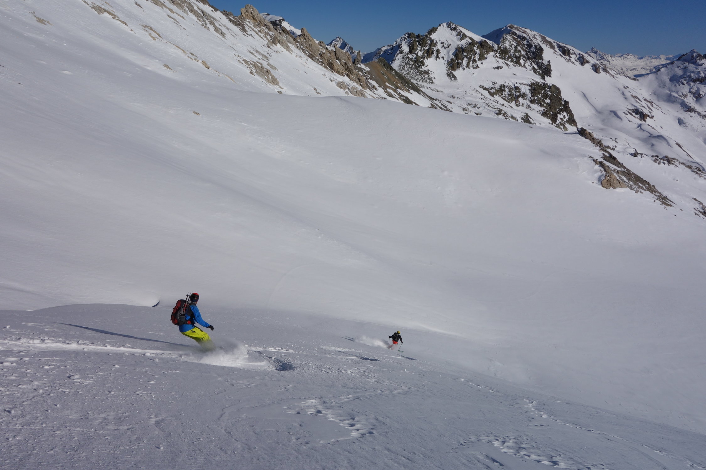 Abfahrt war bis 2500 Pulvergenuss, auch wenn man noch etwas aufschauen muss, weiter unten wird man durchgeschüttelt auf der eisigen Piste. Insgesamt waren wir überrascht von den Verhältnissen, fast kein Feindkontakt.