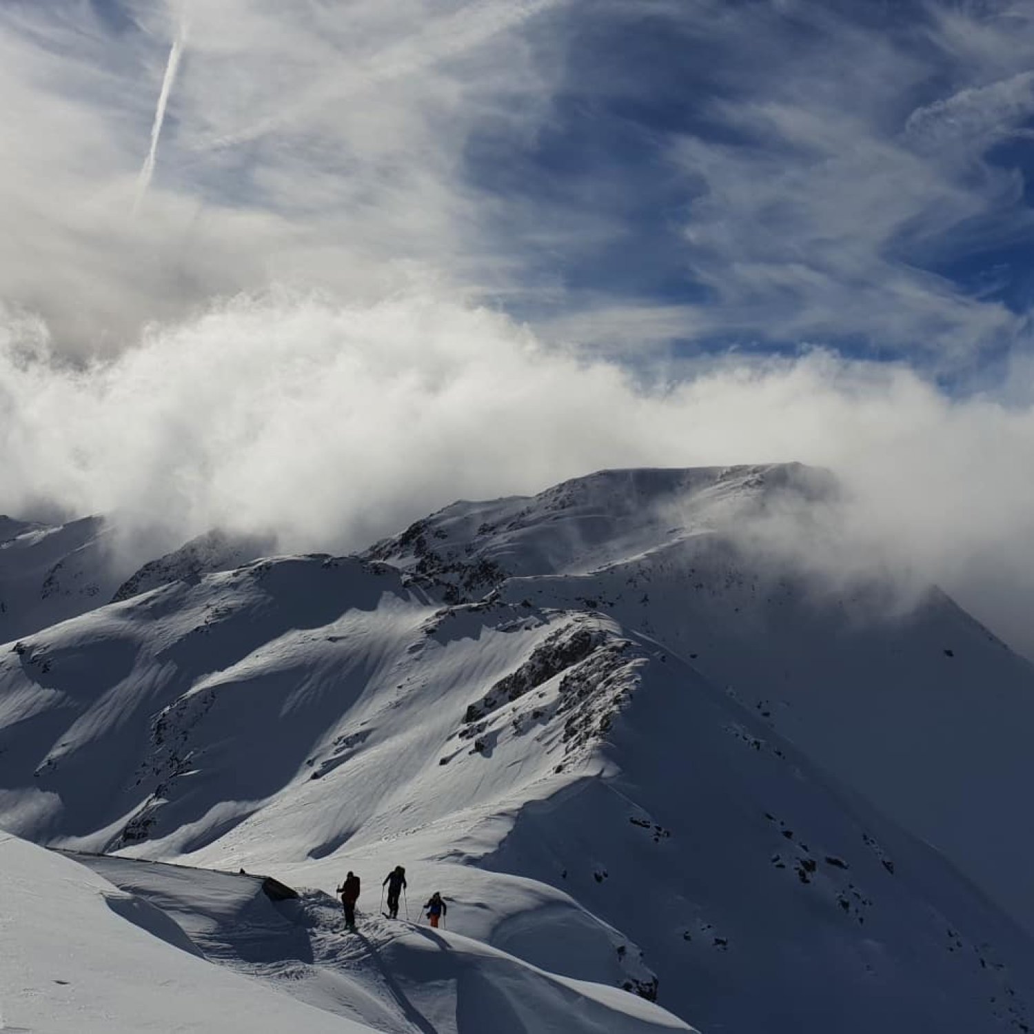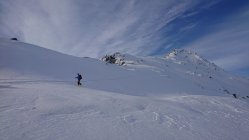 Sehr gute Verhältnisse angetroffen. Aufstieg mit einer Schicht Neuschnee auf einer tragenden Altschnee Schicht. Es hat immer wieder abgeblasene Stellen, wo es dann Dank dem Neuschnee doch griffig blieb. Bei der Schlüsselstelle des Aufstiegs haben wir etwas versucht mit einem höheren Einstieg..besser ist die gleiche Route zu nehmen, wie diejenige der Abfahrt. Am Mittag bei der Abfahrt waren die Tritte griffig.