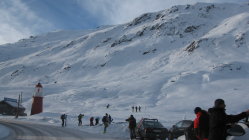 Die Abfahrt nach Tschamut ist noch nicht möglich. Endstation ist der P1831 der GRseitigen Passstrasse.