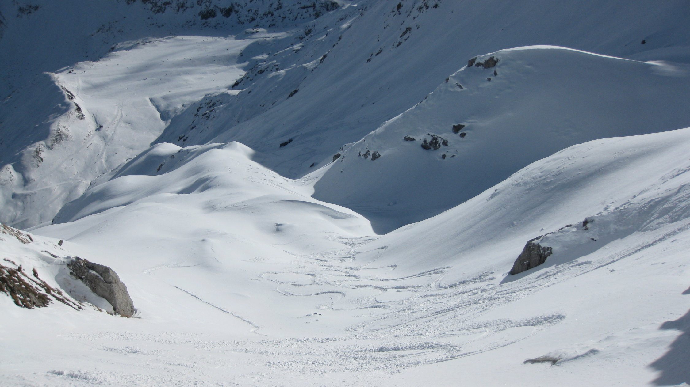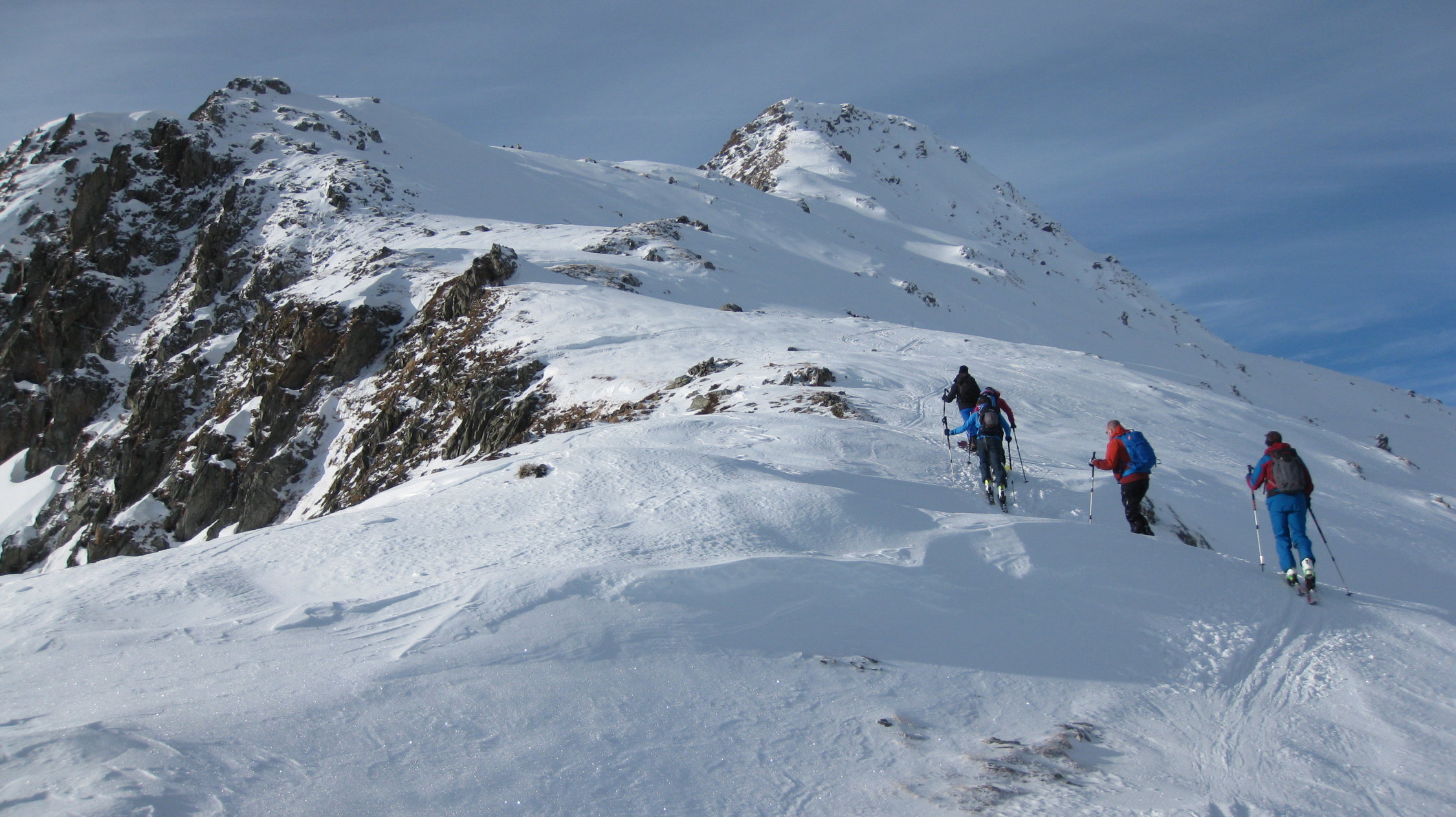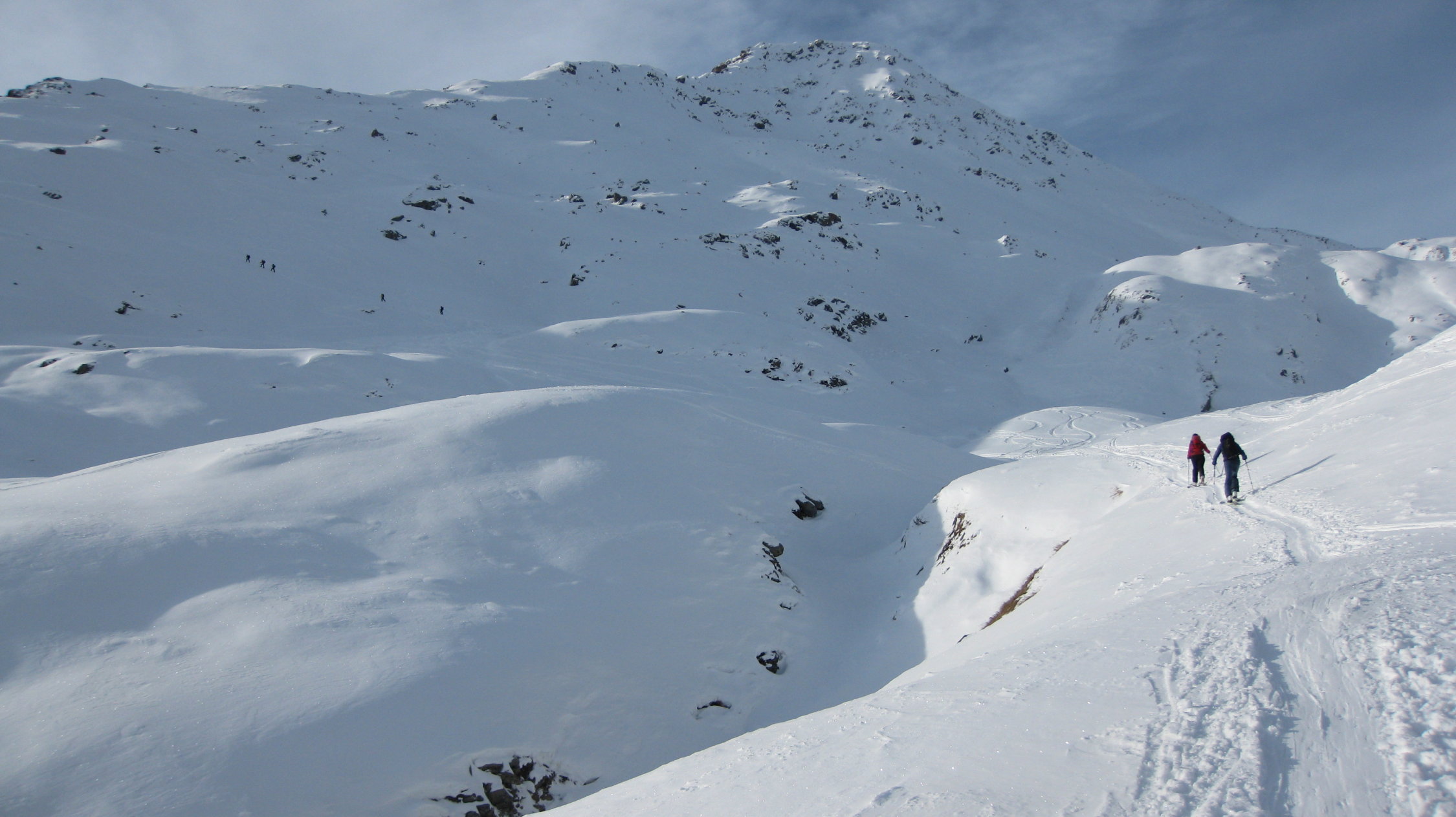 0-25 cm Pulverschnee auf harter Kruste. Hie und da kantenrutschig im Aufstieg. Feine Geländeunebenheiten wurden fürs erste geglättet. Nordseitig ist der Neuschnee nicht mit der Kruste verbunden. Südseitig sieht es günstiger aus.