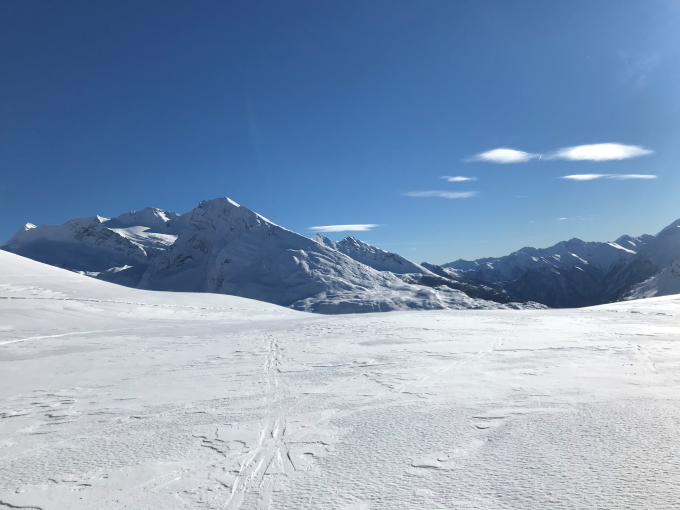 Vorsicht bei den steilen Mulden bei der Abfahrt Richtung Blatte. Wir hatten dort bei Pt 2284 ein Schneebrett ausgelöst. Aufgrund der starken Winde in den letzten Tagen haben sich un den Mulden fiese Schneeverfrachtungen gebildet.