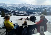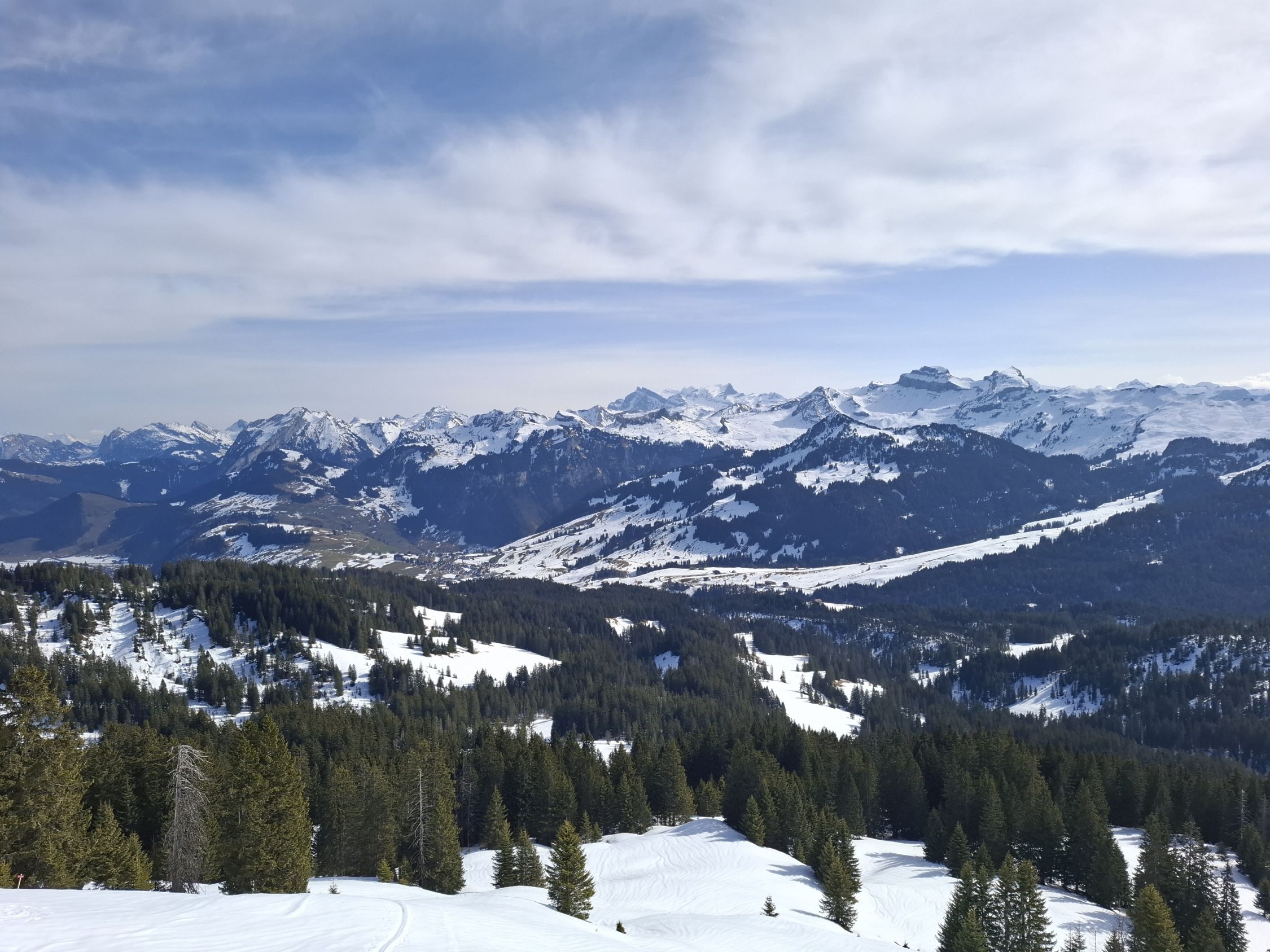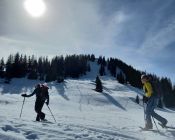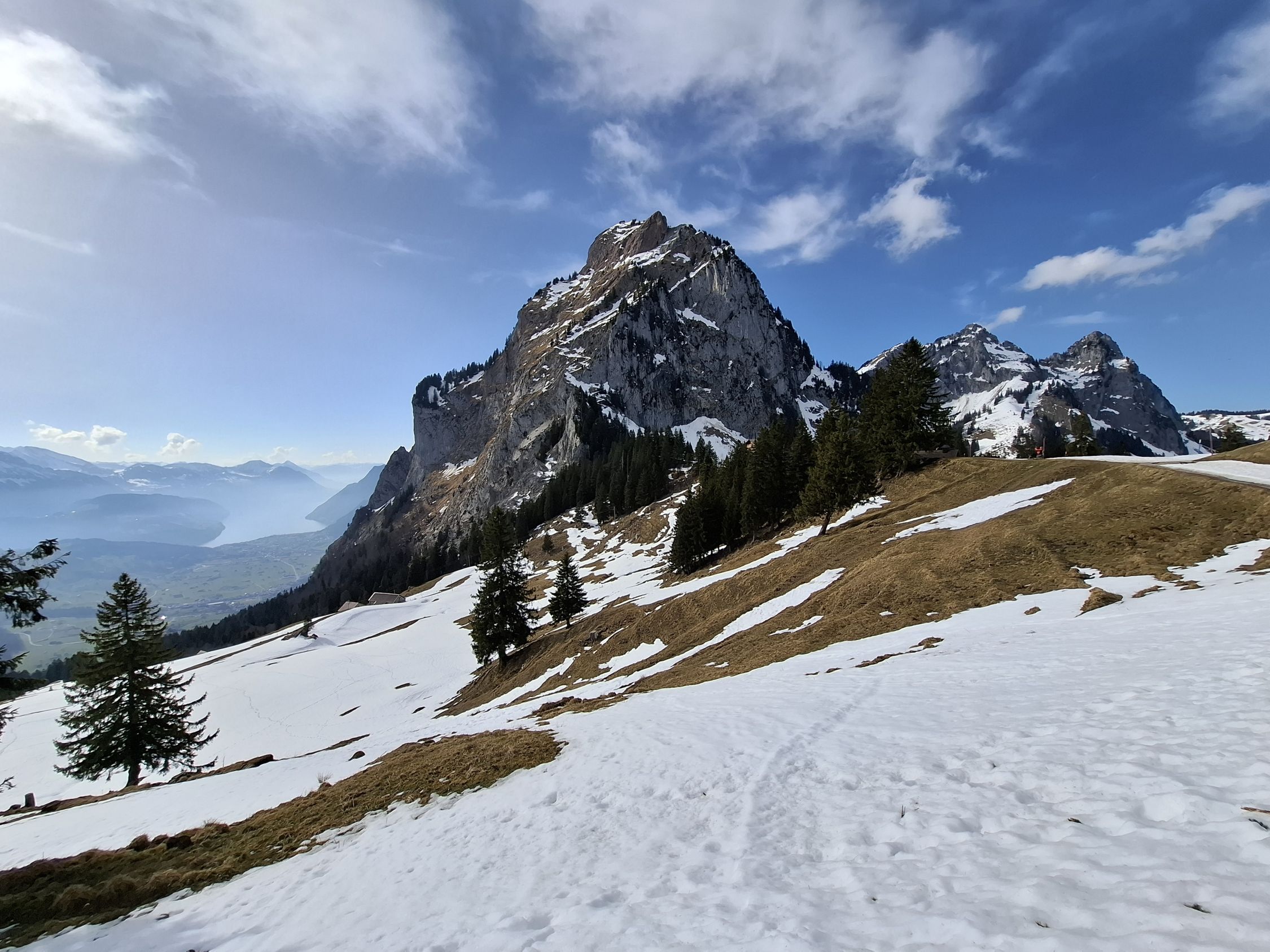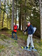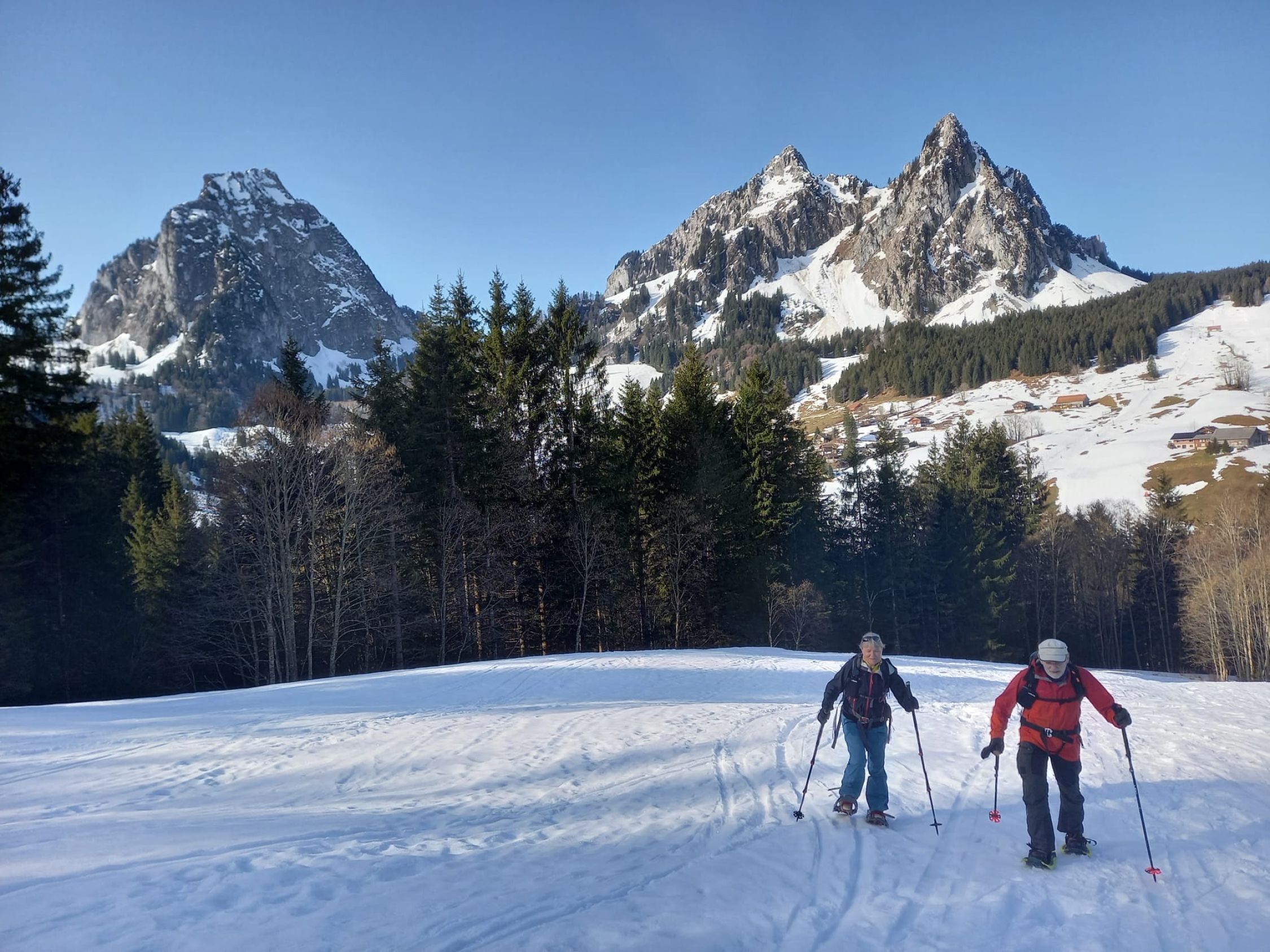 ganz unten wenig Schnee und im Wald manchmal apere Stellen. An den schattigen Stellen war der Schnee morgens noch hart, an den sonnigen Stellen weich. Alles in allem gut zu gehen.