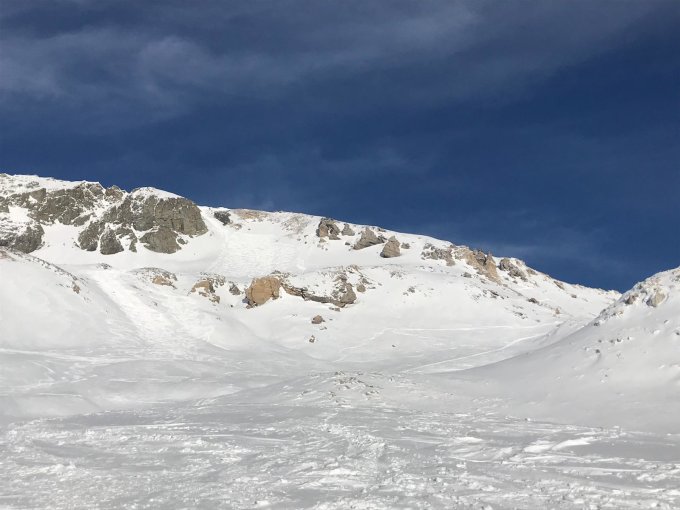 Gute Schneedecke. Oben sogar etwas pulvrig, unten etwas kompakter aber gut zu befahren.