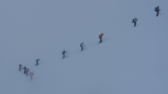 Start bei leichtem Schneefall in Al Acqua. Trotz des schlechten Wetters, waren sehr viele Leute in Richtung Gipfel unterwegs. Wolkenobergrenze etwa auf 2300m. Oberhalb war die Sicht seeeeehr eingeschränkt. Die Abfahrt war aber oben ohne Sicht und ab 2300 mit passabler Sicht in ganz frischem tollen Pulverschnee. ...Wir hatten alle eine Menge Spaß.