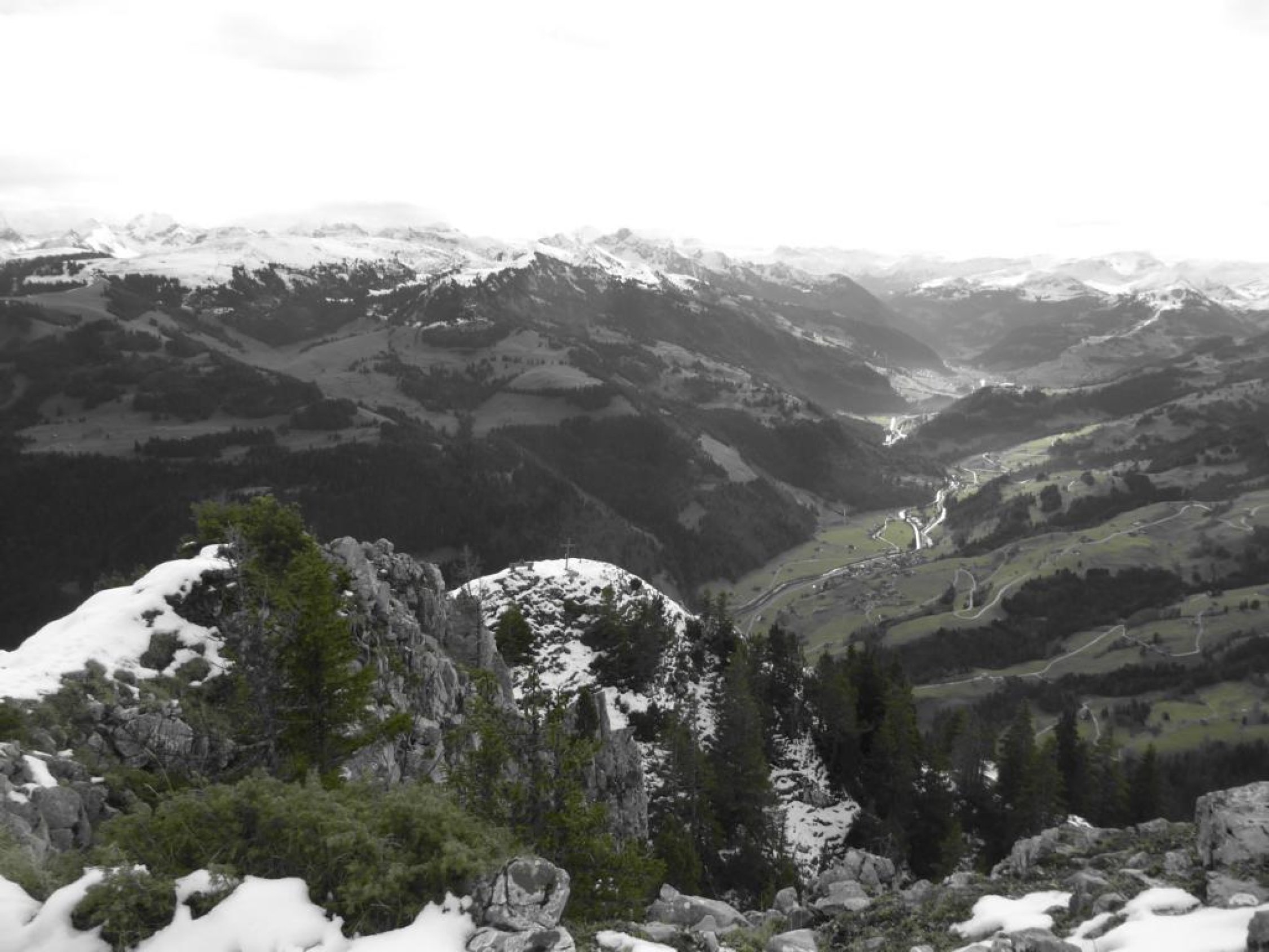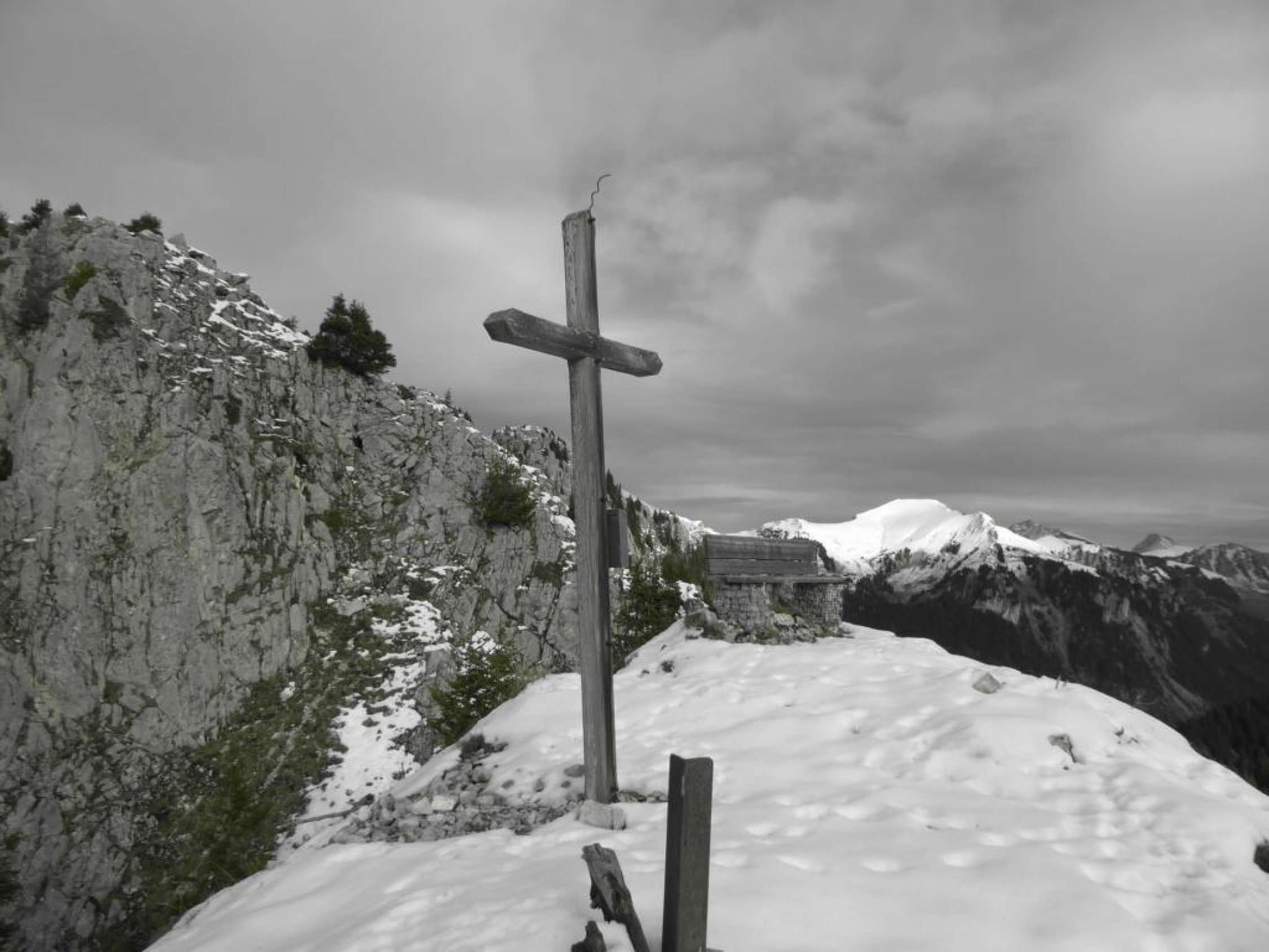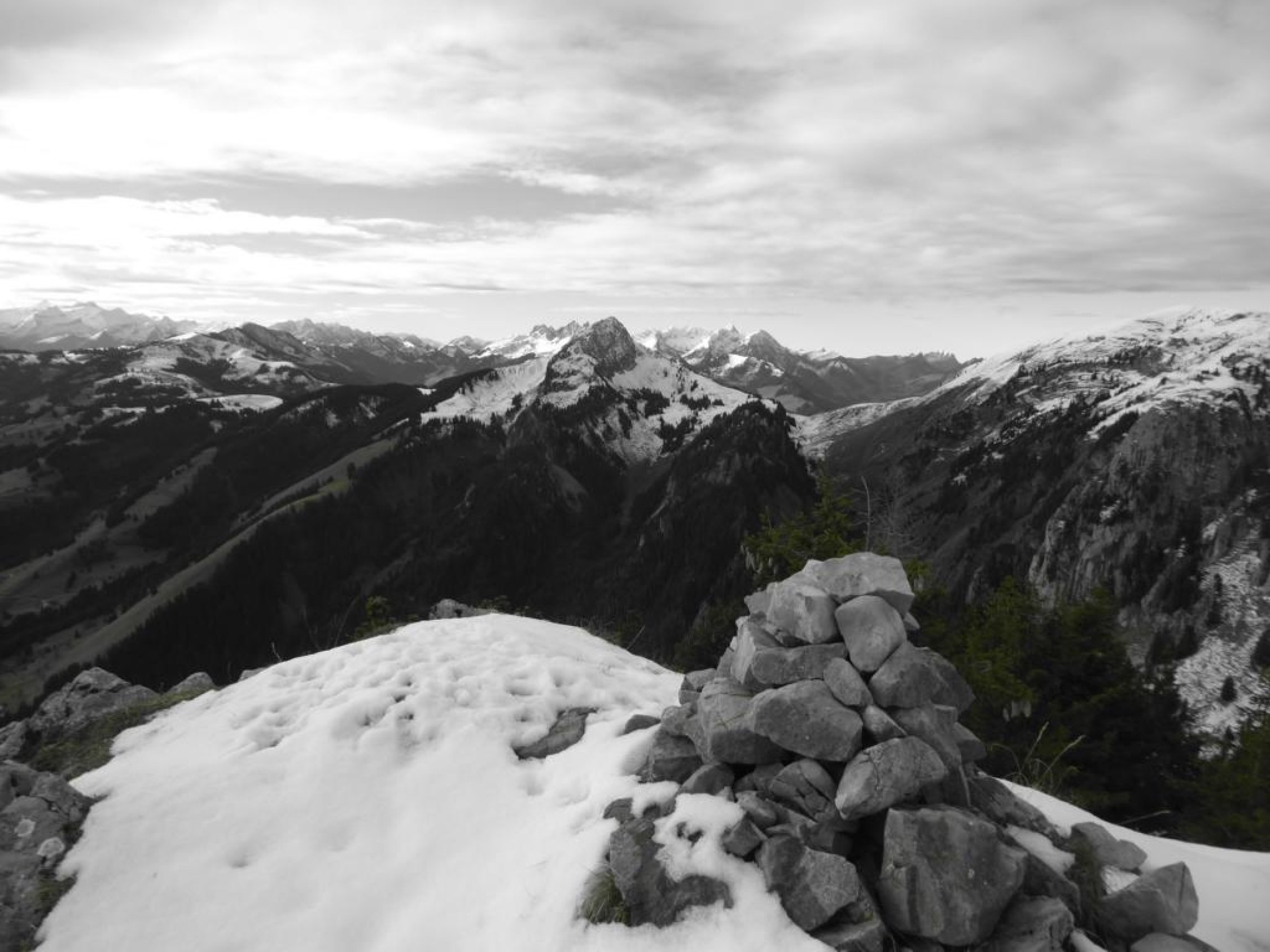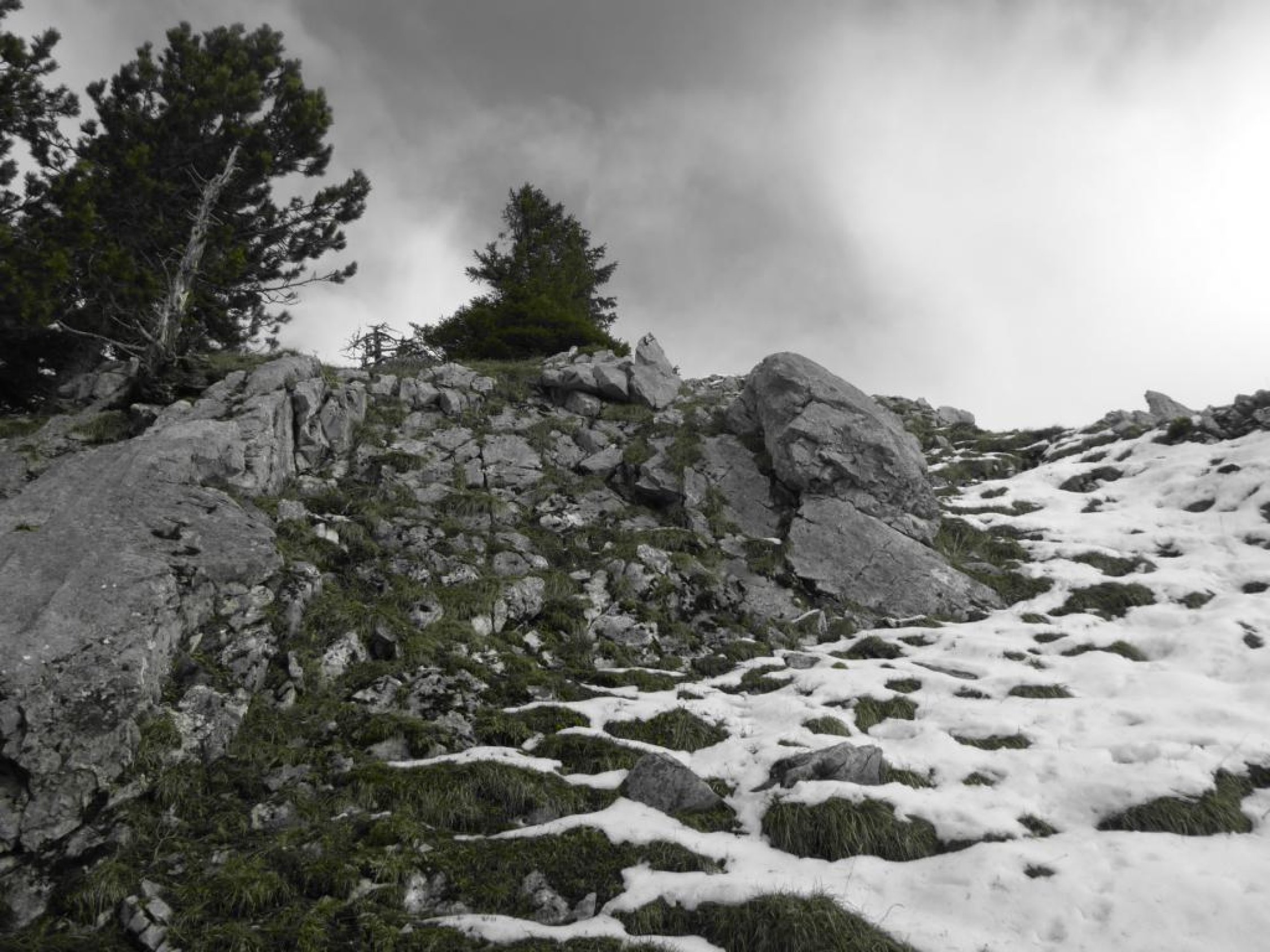 Schnee ab ca. 1700 m, aber nur wenig und weich. Im Schlussaufstieg in den steileren und ausgesetzteren Passagen sowie unter Bäumen kein Schnee. Erst kurz vor dem Gipfel etwas mehr. Auf den Nordgipfel dann 10-15cm, guter Trittschnee, alles noch ganz angenehm zu gehen.